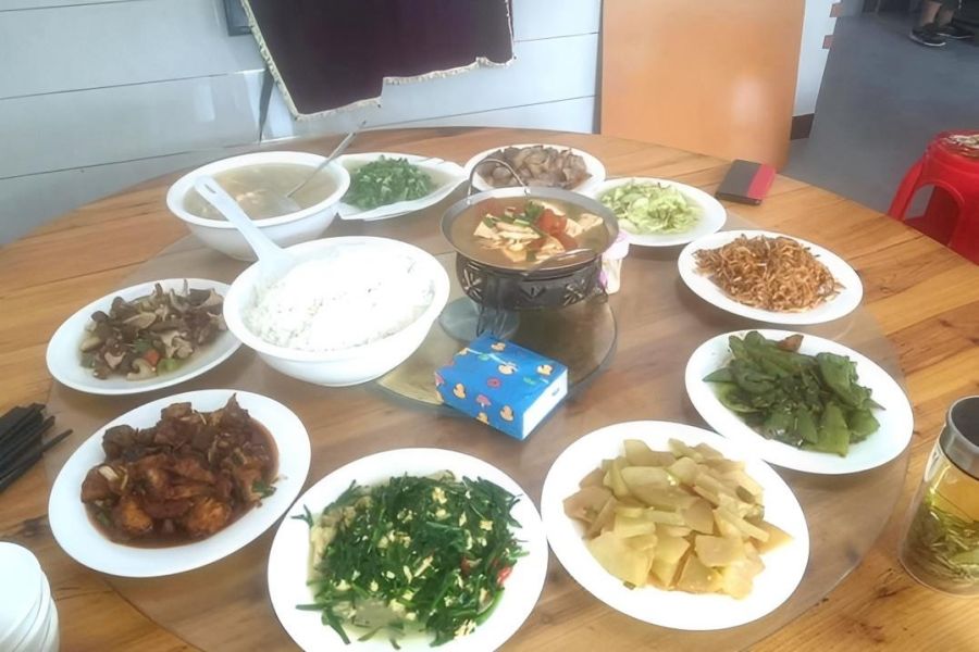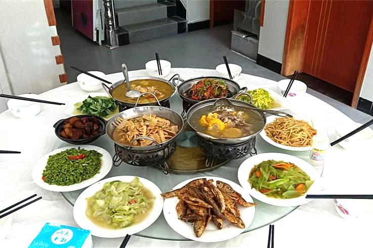 特色菜:梅菜扣肉、野竹笋、河鱼河虾、黑猪肉、红烧土鸡、小炒黄牛肉等