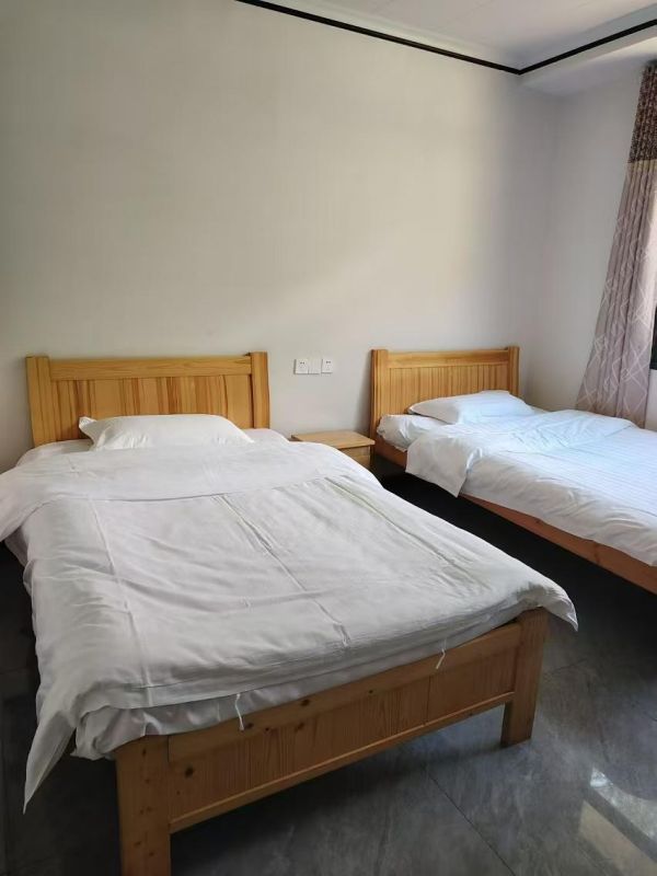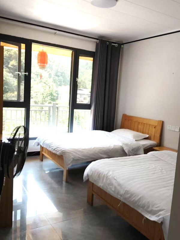 安庆鹞落坪小斌农庄整体规模适中,可同时接待38人入住、50人就餐。内里共有19间优质客房,设有18间标间和1间大床房,可满足家庭出行、朋友聚会、公司团建等不同类型游客的住宿需求。每间客房都配备有独立卫浴、24小时热水、无线网等齐全设施,居住环境温馨,床铺柔软舒适,部分房间还有独立的观景阳台,推开窗就是青山绿水,让人在享受乡村宁静的同时,也能感受到大自然的美丽。