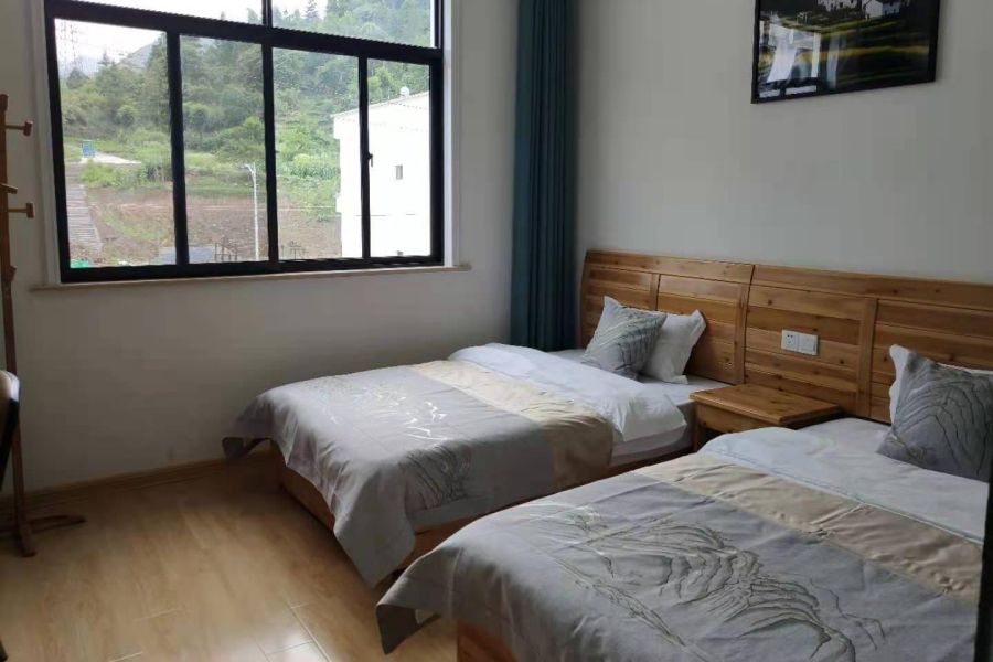 在这里居住的人们过着朴实自在的乡村慢生活,没有城市的车水马龙,没有嘈杂的人声车鸣,寂静的山脚一隅总是这样清幽静谧。清晨可登山观赏日出,白天游山玩水,欣赏河山风景,夜晚可伴着虫鸣渐入梦乡,民宿还特意准备了麻将机、卡拉ok等娱乐设备,还可代购景区优惠门票(8人以上团购,票价可优惠10元),提供规划游玩路线,景区接送站等服务。