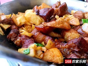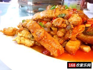 一品锅,硒鱼,土猪蹄,木炭炖土鸡,大盘牛肉、烧麦鱼、干豆角烧肉等。