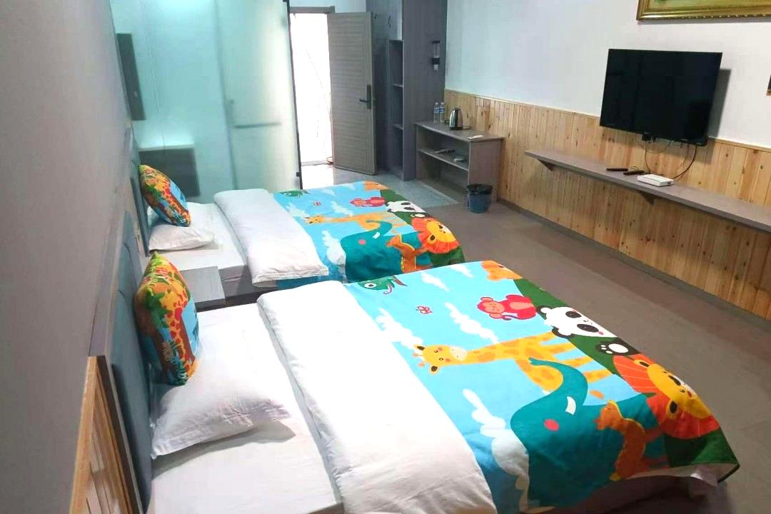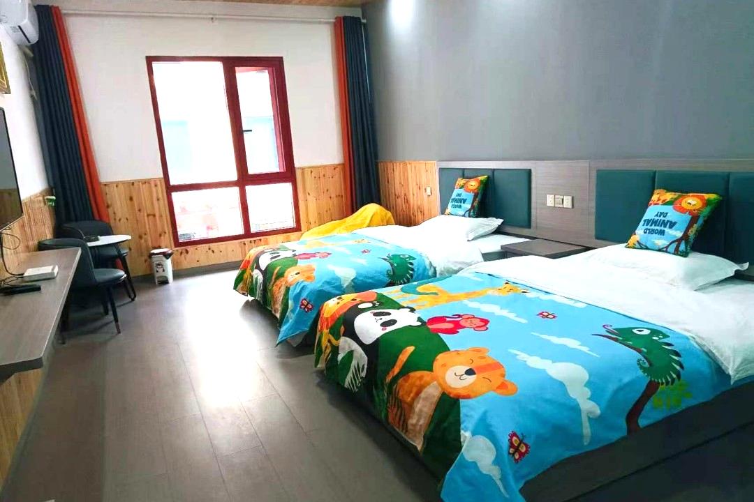 石台牯牛降飞龙山庄规模适中,共有6间舒适客房,提供有4间标间、1间大床房和1间三人间,能同时接待13人入住、就餐。房间环境整洁温馨,在装修上独具家居气息,均配备有空调、电视、无线网、独立卫生间、24小时热水等设施,并重新升级有智能马桶,让您的生活更加智能便捷。房间空间宽敞,主人还精选不同花色的卡通床单作为点缀,不论是小朋友还是大朋友,在这里都能回归自然,在享受住宿舒适的同时,也能找到属于自己的初心,找到童年的快乐!