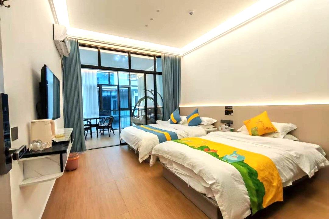 石台牯牛降承磊民宿以徽派建筑为基调,巧妙融合现代轻奢设计,内部以原木色为主调,精心打造有客厅、茶吧等区域,您在这里可以品茗聊天,听波涛蝉鸣。作为大演乡的中高端民宿,老板在布置上将生态与奢华结合,让您不光能享受城市的舒适,更是体验山林的惬意,可谓是两全其美。