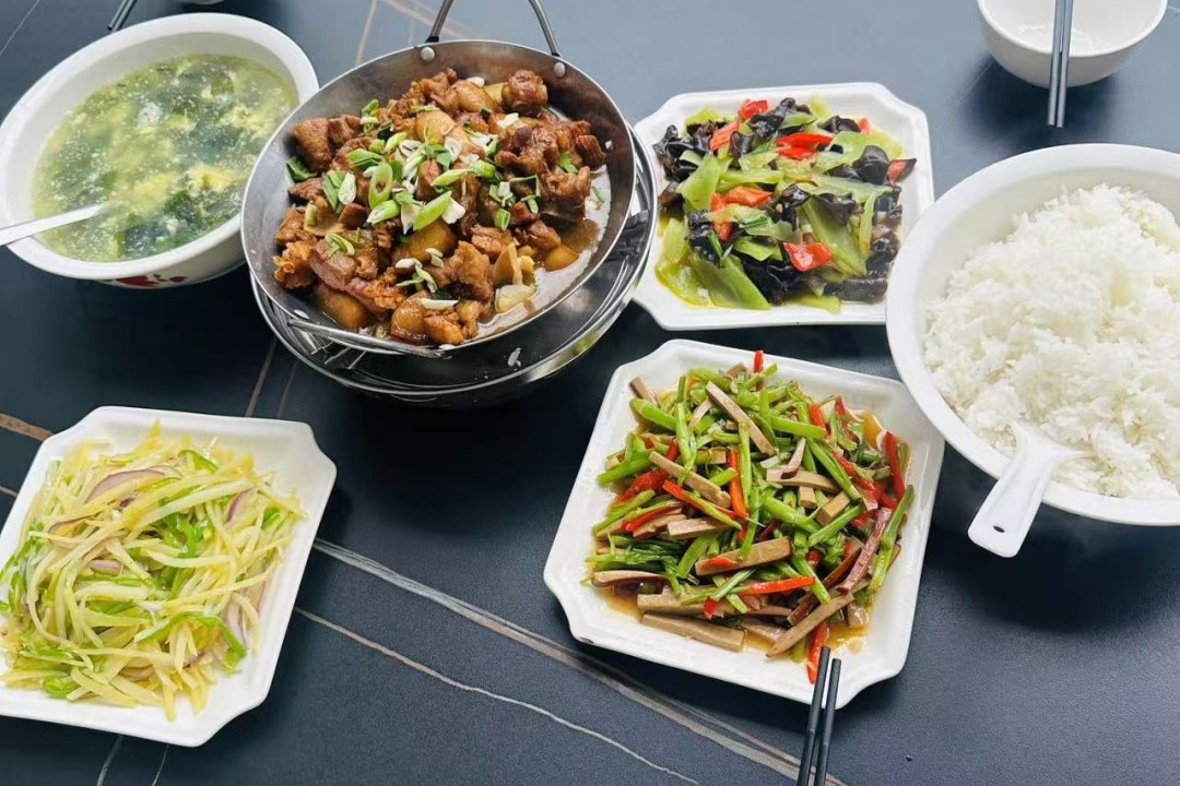 石台彩石谷农家乐餐厅设置在一楼,能同时容纳50位宾客就餐,可接待公司团建、家庭聚会、生日宴请、朋友出行、老年养生等各类团体活动,为您提供有地道的农家风味美食可供品尝,包括有土鸡、河鱼、河虾、笋干、土猪肉以及各种时令青菜和炒菜,都是当地也有的生态绿色食材,口味丰富,品质优越,绝对能为您的味蕾带去一个绝佳的享受。