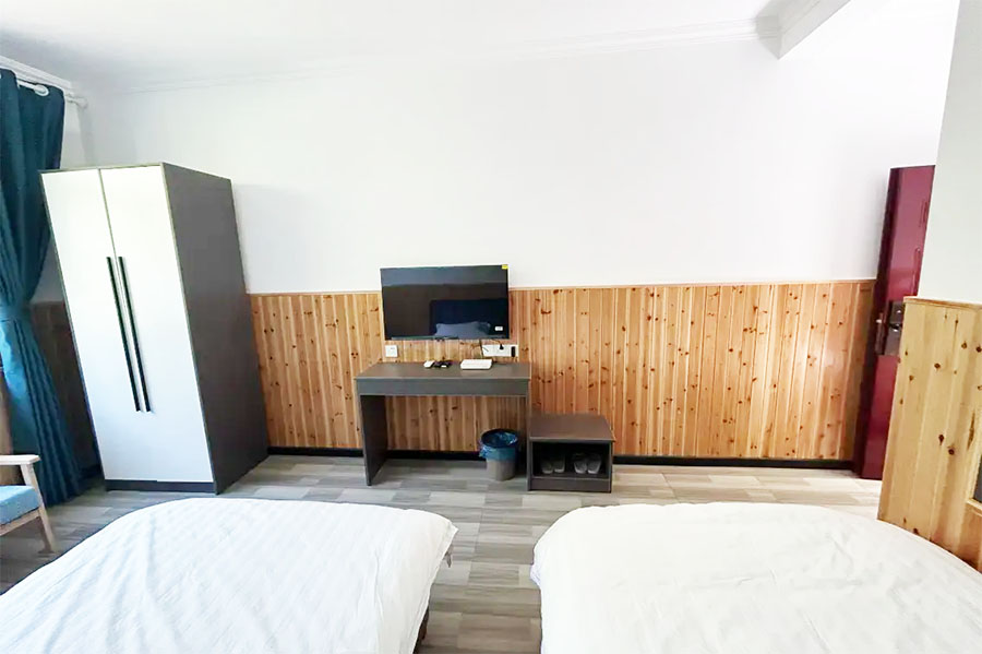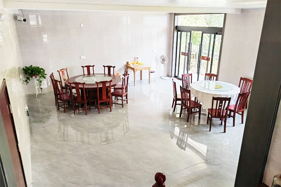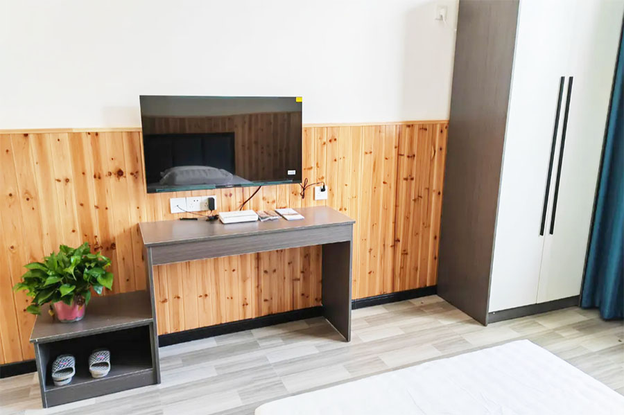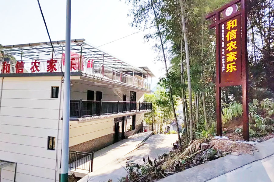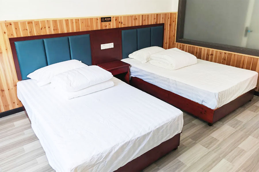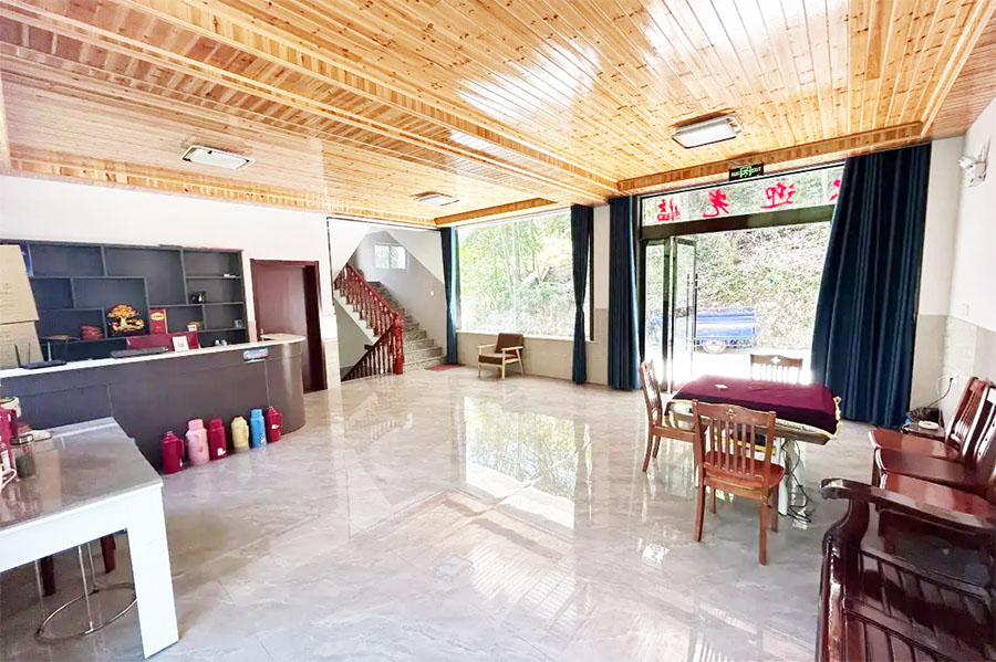 石台和信农家乐整体环境雅致清幽,依自然地势而建,气派的三层小楼与山野景致浑然相融,周边竹林青翠,繁花点缀,石阶通幽、溪水潺潺,可谓是开门见山,推窗揽绿,处处皆是原生态的山野诗意。小院规模适中,共有8间客房,设有7间标间和1间三人间,能同时接待17人入住、就餐。客房内部装修简约雅致,褪去了繁冗的装饰,空间通透敞亮,采光极佳,尽显返璞归真的自然之美。房间床品柔软亲肤,配套设施一应俱全,是您沉浸于山野,放松身心的极致享受。
