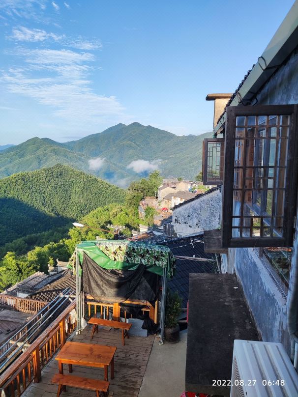 黄山木梨硔云华客栈就坐落在木梨硔村山顶,是木梨硔最早的一家客栈,整体是由老板自家老房子改造而成,其在传统的徽式建筑上进行改造,保留了复古框架,同时新增了观景露台和户外休闲区,拍照视野非常不错,可随时打卡云海落日奇观,非常有情调。