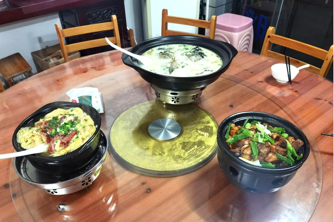 特色菜:红烧肉、笋干烧肉、海带排骨汤、青椒肉丝、油焖茭白、小河鱼等