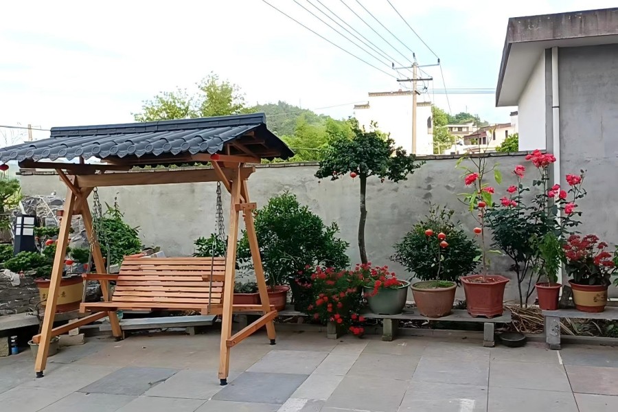 歙县紫阳别院民宿临街而建,门口就是公路,自驾交通很是便利。民宿设计风格独特,整体环境复古大气,属新中式融合了徽派的装修风格,拥有宽敞整洁的花园小院,提供有充足的休闲区,并设有秋千、凉亭、假山园景等设施,闲暇坐在院中喝茶聊天,也是非常不错的。