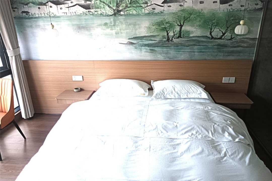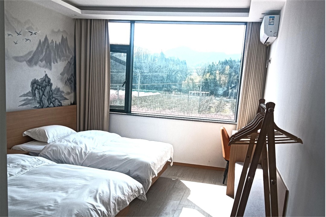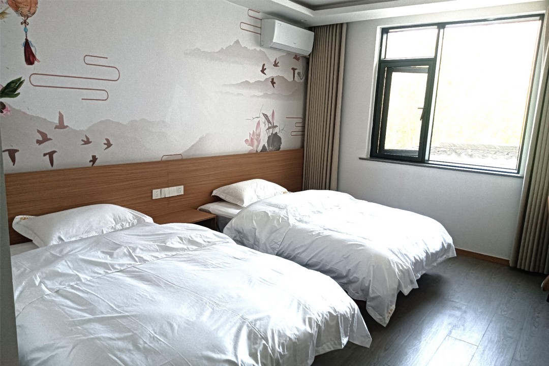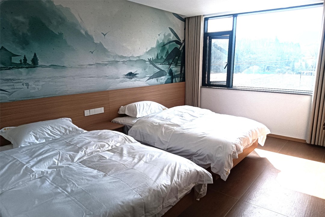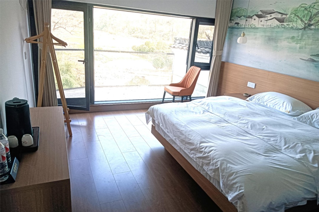泾县汪掌柜精品民宿是以老板娘姓氏来命名,是一栋独具徽派古韵的复古休闲别墅,整体环境雅致,门前就是公路,且与停车场相邻,自驾交通很是便利。民宿内共有9间客房,提供有4间标间、3间大床房和2间亲子间,能同时容纳20人入住。客房属现代风格设计,配备有各类齐全设施,环境舒适,采用水墨画风的背景墙作为装点,并安装有明亮的观景大飘窗,能让您更好的欣赏窗外美景,感受古村的风韵与魅力。