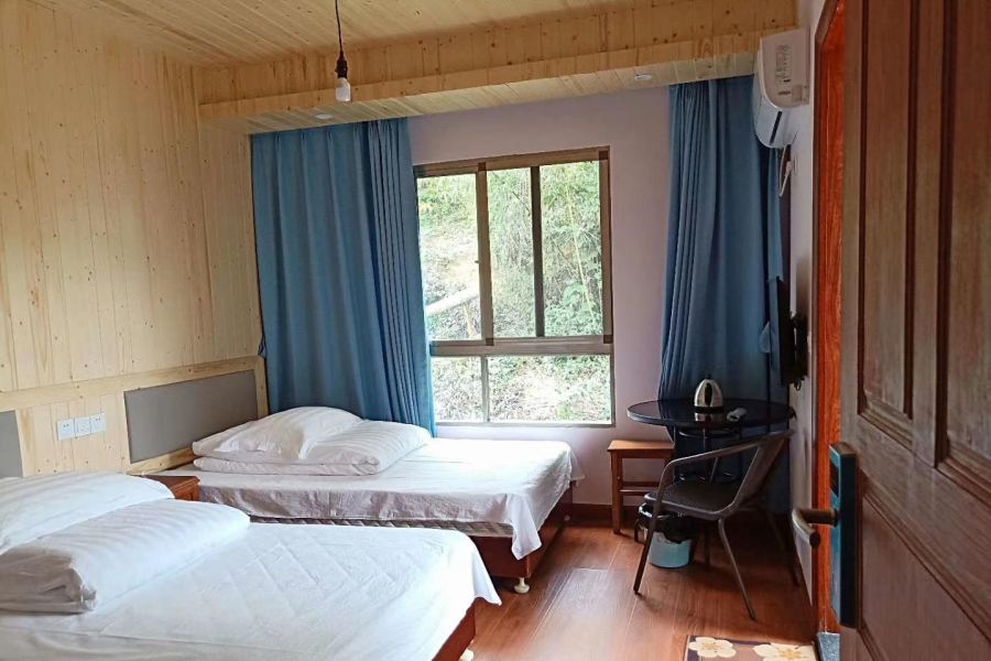 竹林小屋农家乐是一家集坡山村特色餐饮、住宿、休闲娱乐于一体的精品山居农家乐,雅致的徽派精致小楼就建在村里的山坡之上,高耸的地理位置造就了良好的观景视野,自身即是观云海的最佳位置。清晨皑皑白雾散于山间,仿佛将云踩于脚下,缥缈有意境。农家乐四下环境也是美极,群山脉脉相连,大片的油菜花田更是美艳夺目,原生态的美景犹如诗画一般,让人着迷。农家乐共有13间装饰精致的客房,可同时接待30人住宿、用餐,室内装修精致考究,温馨大气,有标间、三人间等多种规格,均配备有空调、液晶电视、独立卫生间、24小时热水淋浴、wifi无线网....等等设施,还有专人定时清洁卫生,更换用品,包您拥有一个完美愉快的田园假期。