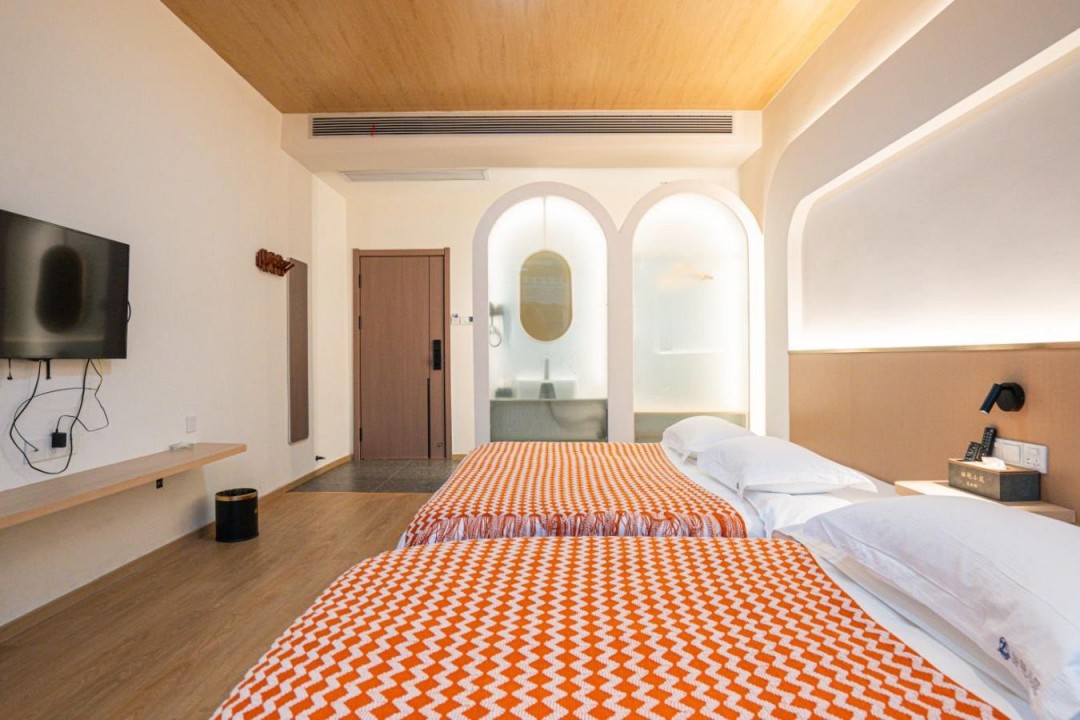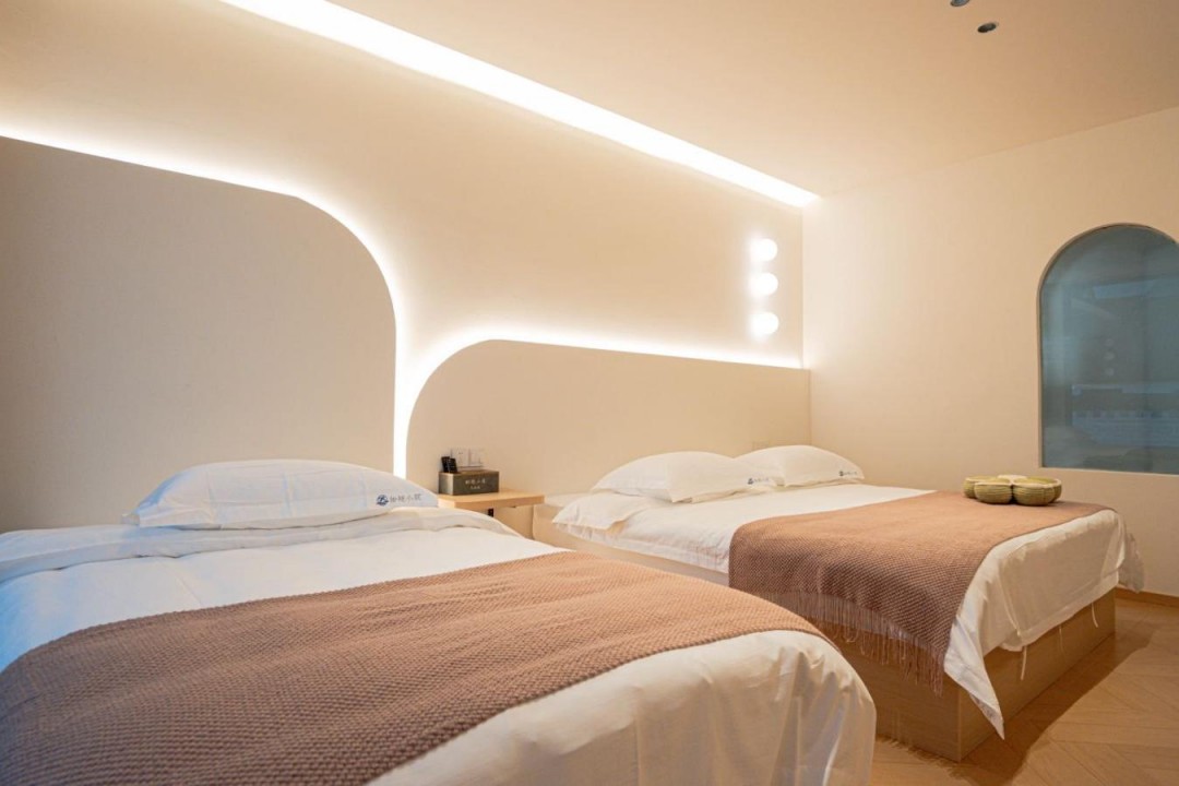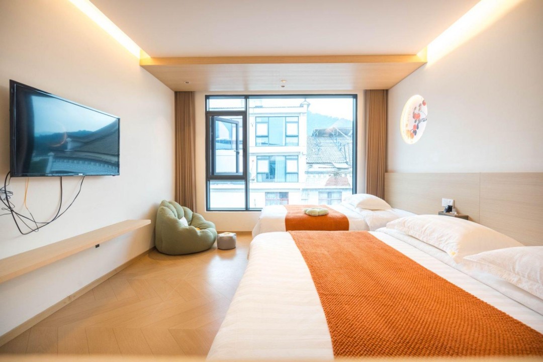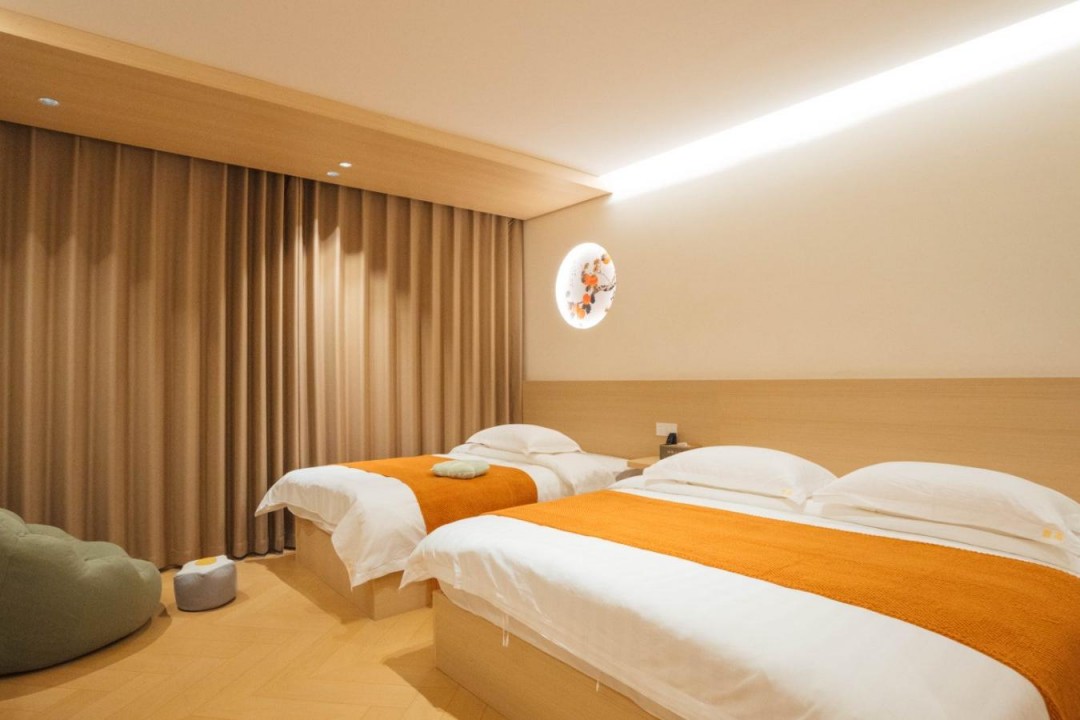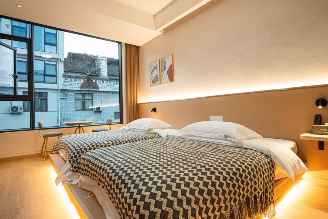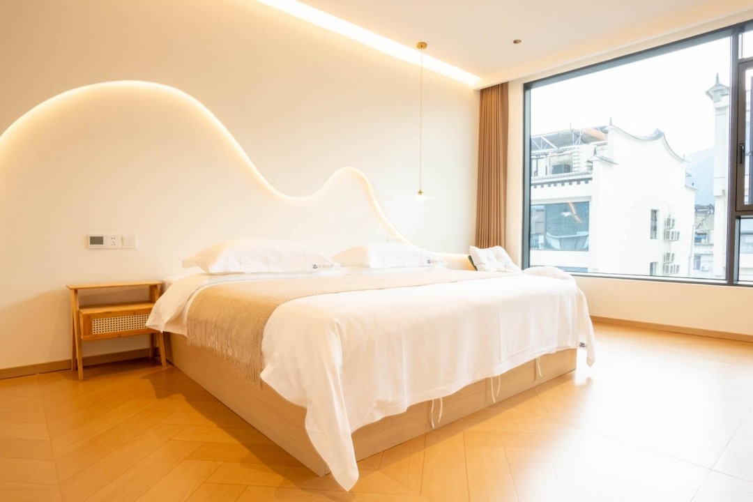 金寨天堂寨甜艳小筑民宿共有20间优质客房,提供有9间标间、4间大床房、2间三人间和1间套房,能同时接待47人入住。房间依旧是极简轻奢的风格,内里配备了齐全的硬件和生活设施,设计感超强,均安装有明亮的观景玻璃,整体空间强调线条感与灯光氛围,让您在这里既能享受到舒适睡眠,也能领略到度假浪漫。