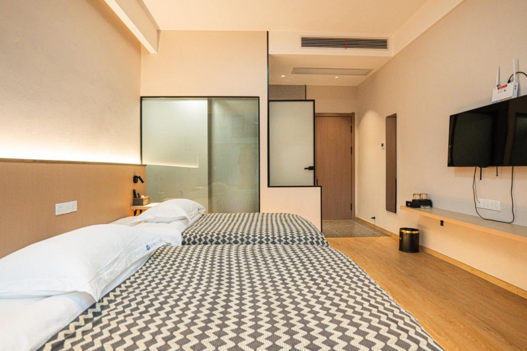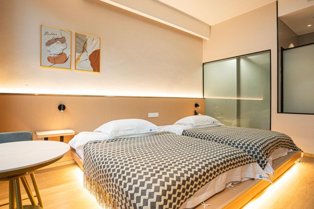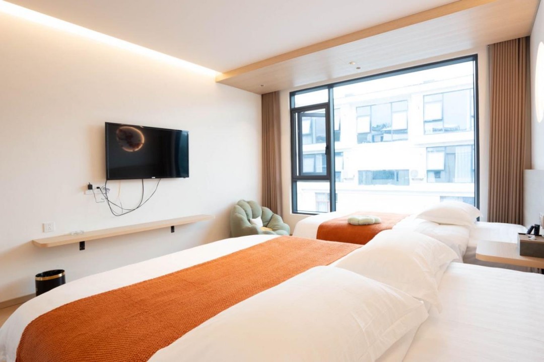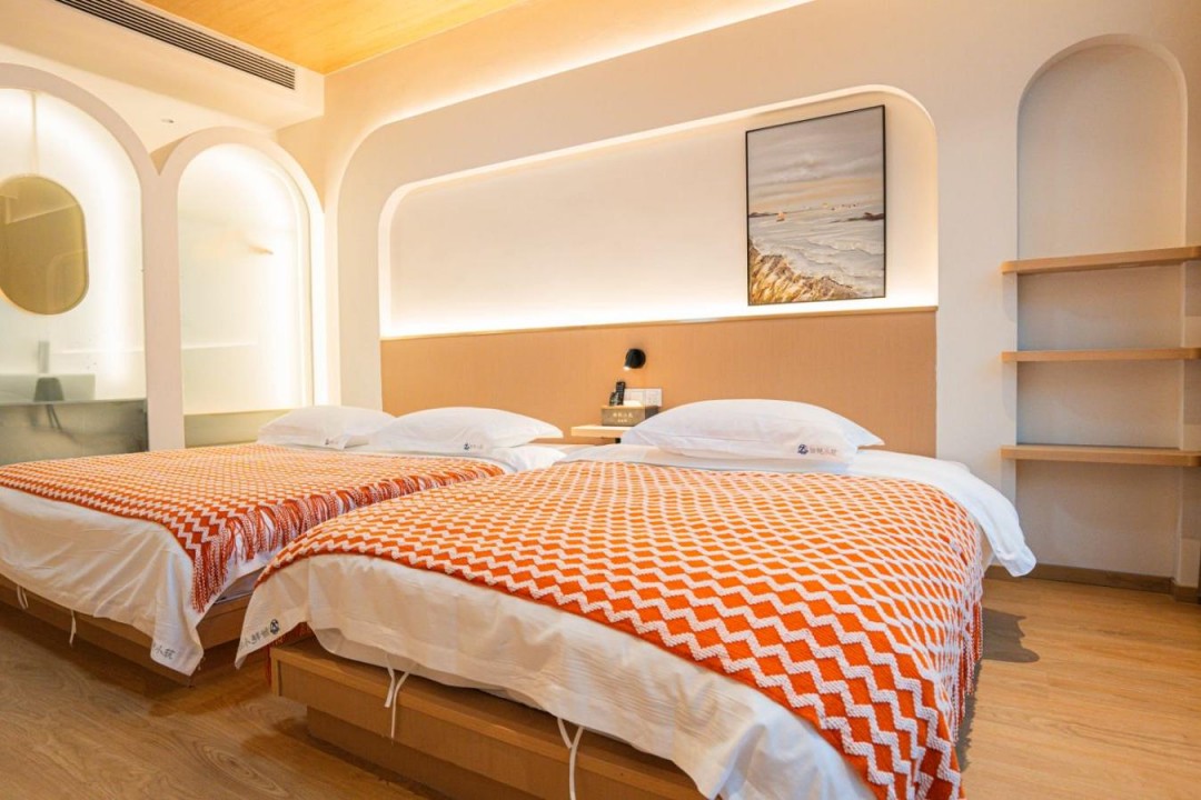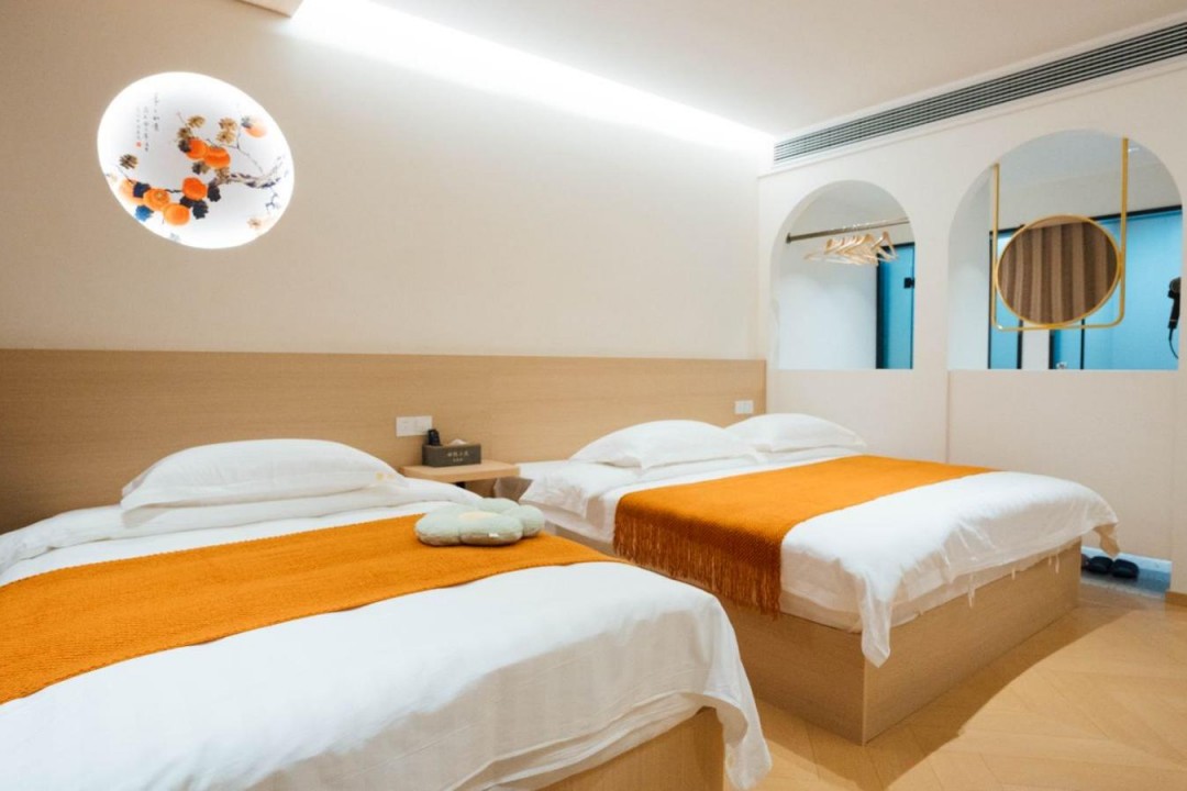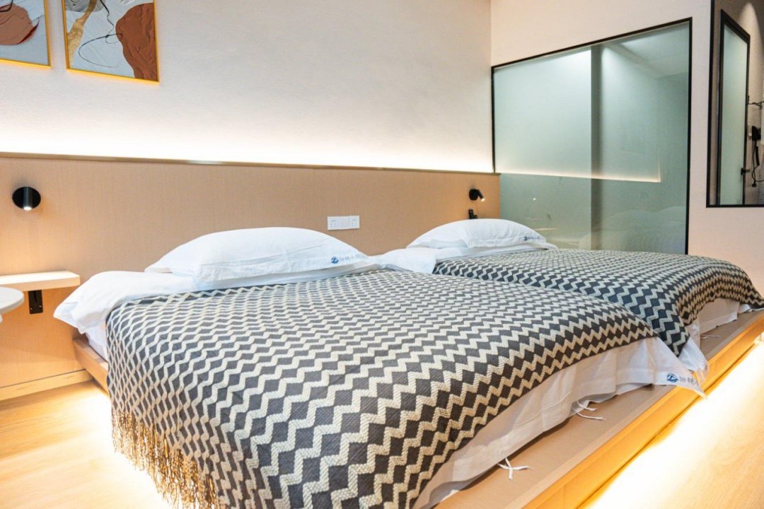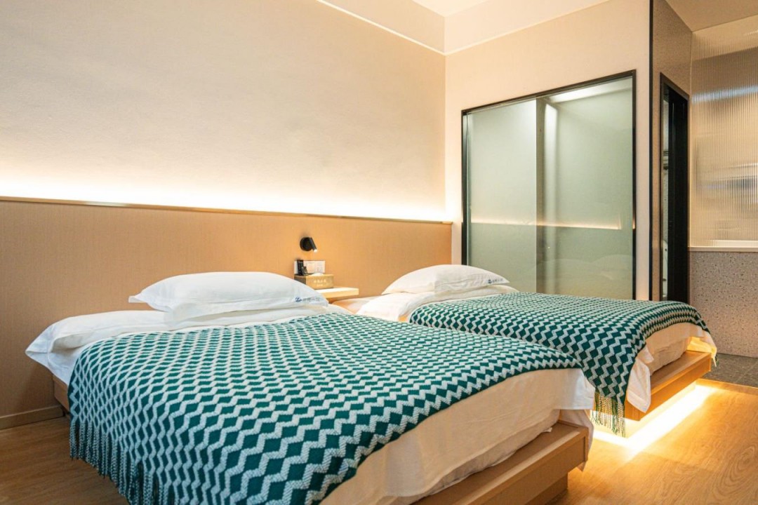 金寨天堂寨甜艳小筑民宿共有20间优质客房,提供有9间标间、4间大床房、2间三人间和1间套房,能同时接待47人入住。房间依旧是极简轻奢的风格,内里配备了齐全的硬件和生活设施,设计感超强,均安装有明亮的观景玻璃,整体空间强调线条感与灯光氛围,让您在这里既能享受到舒适睡眠,也能领略到度假浪漫。