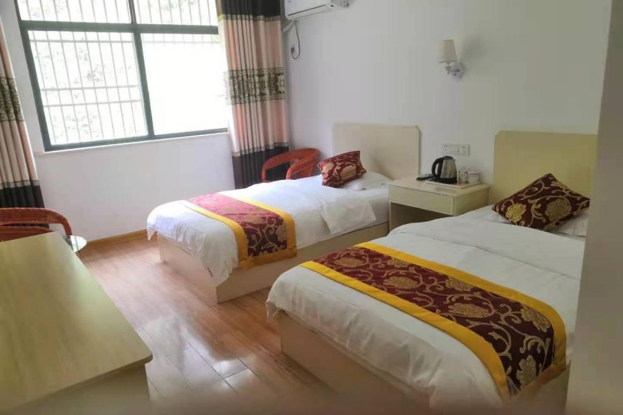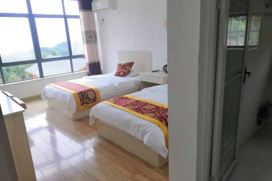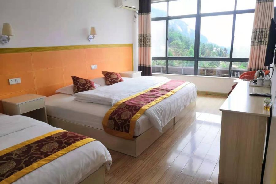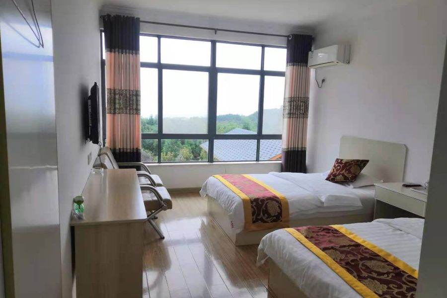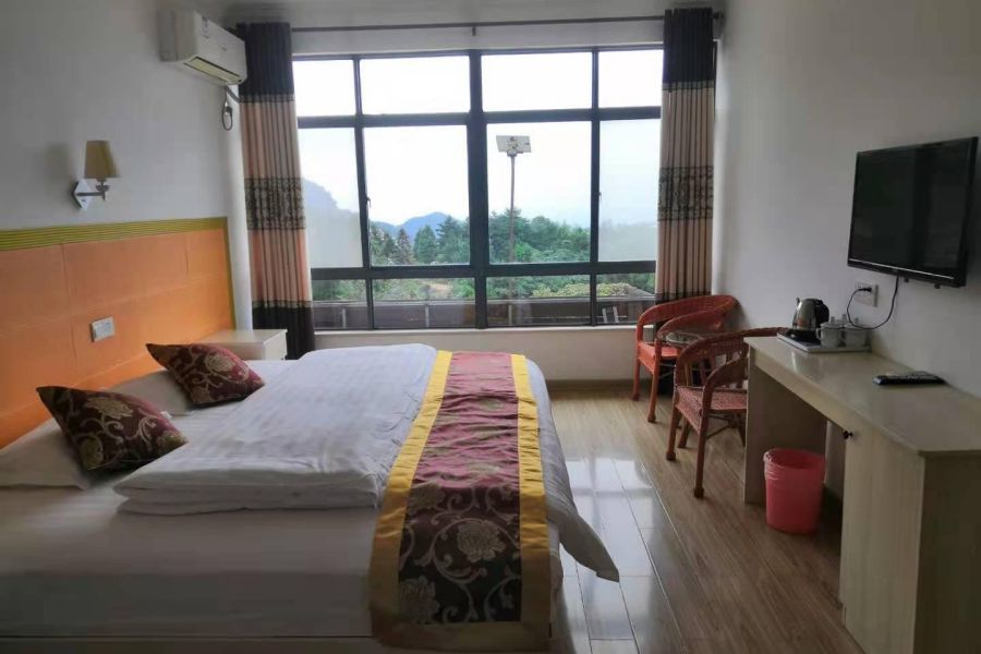天柱山七星客栈有宽敞的开放式农家庭院,可以作为停车场供自驾游客使用,联票的两层别墅伫立在半山腰之上,周边重山峻岭环绕,苍翠欲滴,自然环境非常优异,立于院中便能将周边山林美景尽收眼底。这里晨可观日出,晚可看星辰云海,清凉纯净的空气清新,是不可多得的避暑度假圣地。客栈共有8间客房,都是精装山景房客房,可接待30位宾客住宿、用餐,其中三人间3间,大床房3间,标准间8间。均配有空调、液晶电视、24小时热水、独立的卫生间等设施,装饰布置温暖舒适,宽大的落地窗外即是画卷般的美丽风景,能给您极佳的住宿体验。