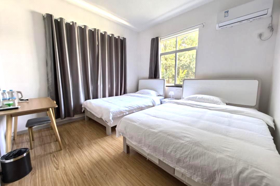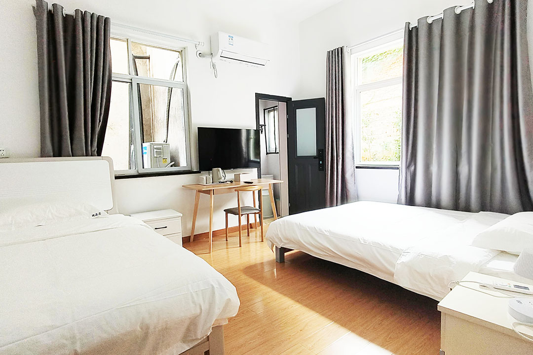 广德桃源居民宿内部装修采用原木色调和现代设计,提供有8间舒适客房,设有2间标间、2间大床房和4间亲子间,能同时接待20人入住、就餐。房间设计充分考虑了采光和观景需求,采用简约的现代风格装修,配备有空调、液晶电视、无线网、独立卫浴、24小时热水等齐全设施。同时设有多角度大窗,将苍翠竹海与连绵山峦引入室内,让您能在鸟叫虫鸣声中感受自然,尽享住宿舒适。