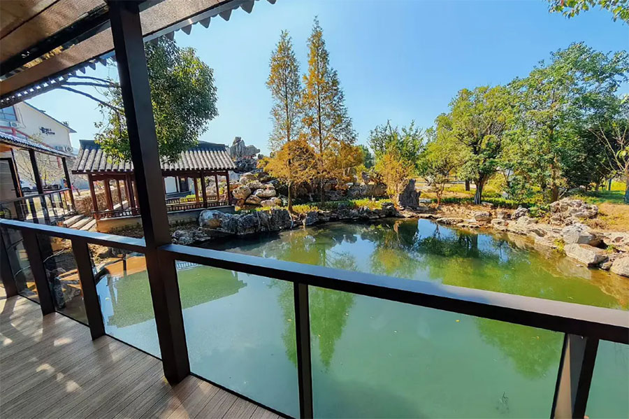 广德太极洞云林小院民宿作为广德最受欢迎的民宿之一,整体占地面积广阔,环境清雅秀丽,推门而入便觉满目雅致。院内草木葳蕤,假山池塘相映成趣,亭台连廊环绕其间,更有整齐的菜畦、草坪花园以及充足的休闲区域供您赏玩,不管是与三五好友围炉煮茶,还是捧一卷书静享时光,或是夜幕下烧烤撸串,皆是难得的休闲体验。
