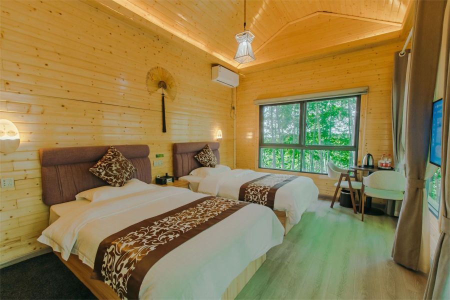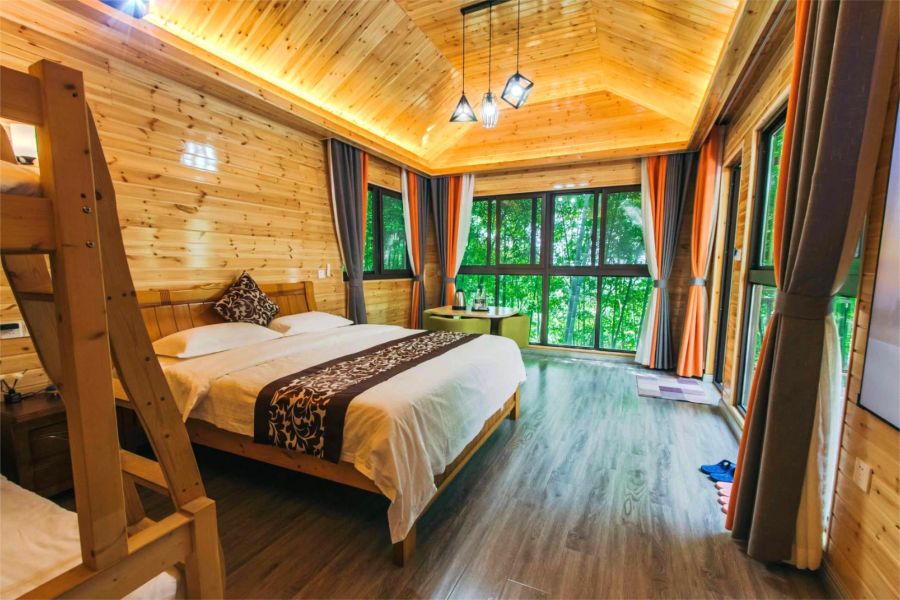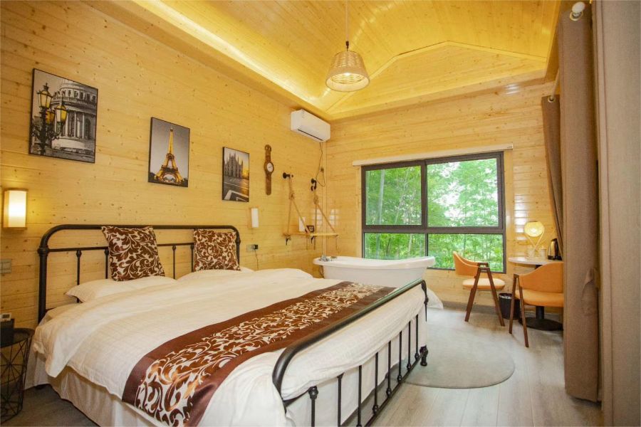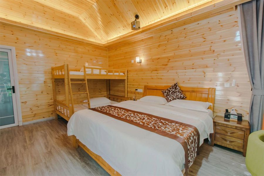 客房类型:标间8间、亲子间7间、大床房2间(巨幕影音蒙古包、林间木屋、露天帐篷)