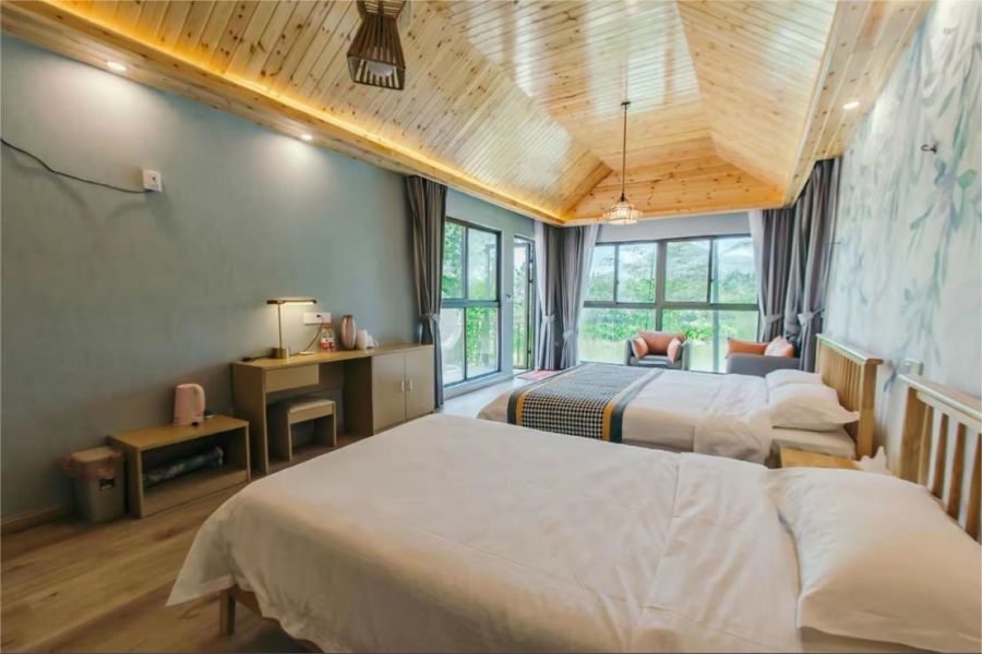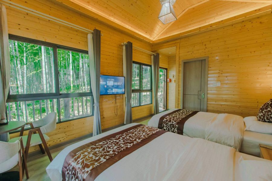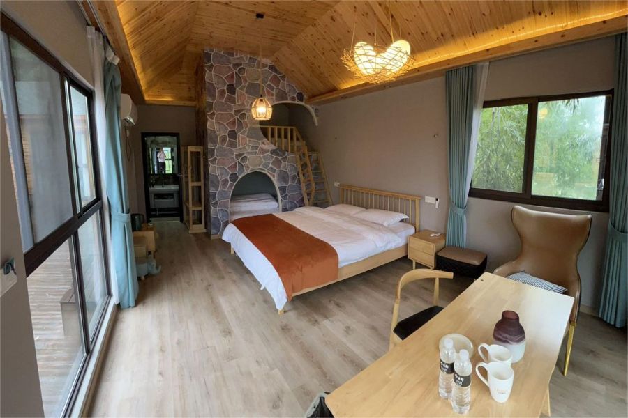 这里有着17间环境优越的竹林木屋,有特色的巨幕影音蒙古包,还拥有300亩茶园、茶厂、农家餐厅、会议室、帐篷大锅灶、帐篷露营地、儿童乐园等丰富的娱乐区域,可同时接待40余位宾客入住就餐,体验极佳。尤其适合朋友聚会,或带着小朋友还体验田园生活。