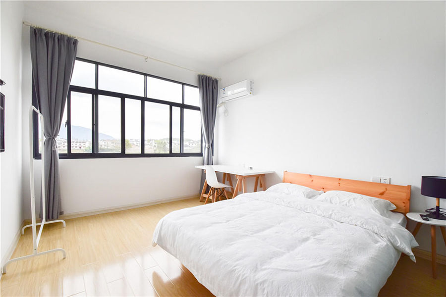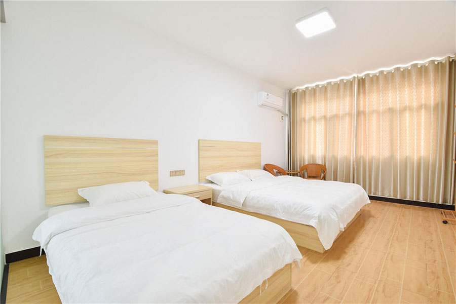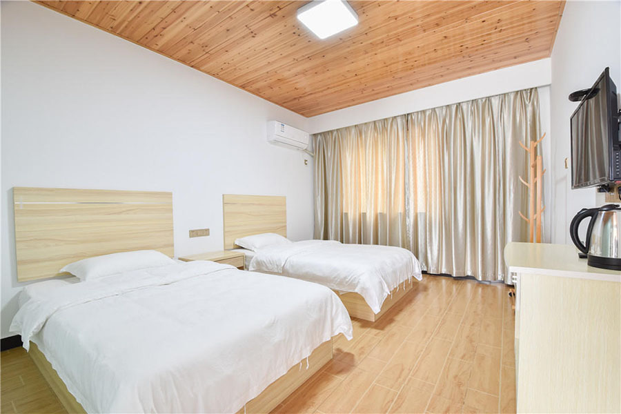 泾县山居江景宾馆临河而居,整体以徽派建筑为基调,将白墙黛瓦与现代禅意相融合,同时引入山水意趣,给人一种身处于自然的轻松之中。宾馆内里共有14间客房,设有11间标间、2间大床房和1间亲子间,能同时接待28人入住、就餐。房间装修简洁而明亮,以原木色调为主,氛围温馨雅致,线条利落明朗,均配备有空调、电视、独立卫浴、无线网等设施,并精选舒适柔软床品,让您在这里能卸下城市喧嚣,尽享山野间的休闲惬意。