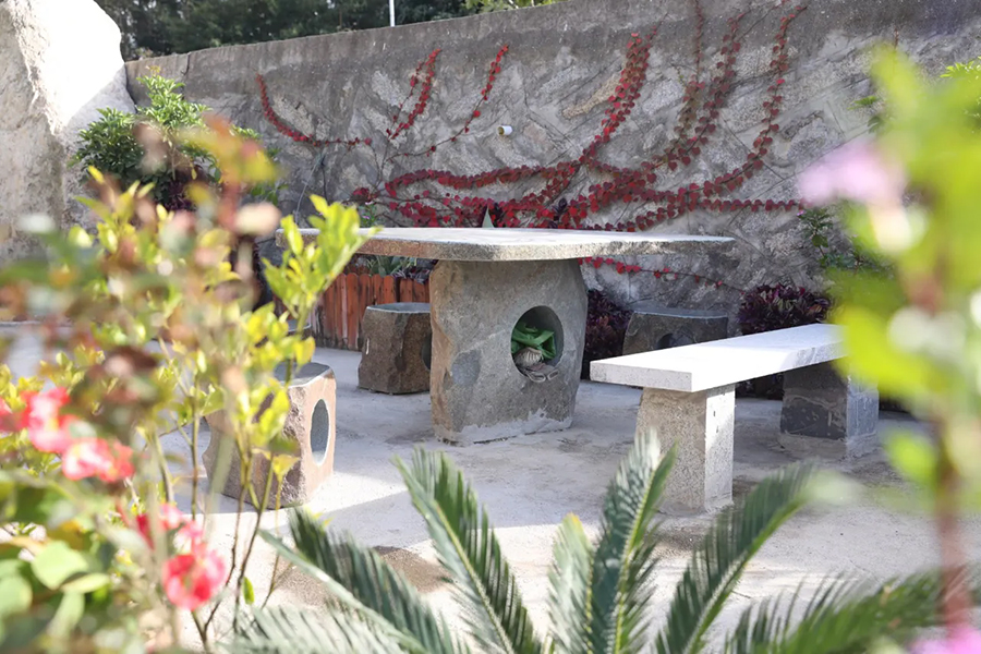 湄洲岛淘时光民宿以山海藏诗意为核心,将海岛风情与雅致格调相融,自成一方避世秘境。这里是典型的渔村民居风格,环境清幽,院内花木扶疏,休闲茶座错落其间,公用区域设有自煮厨房与烧烤露台,好友相聚可烹鲜烤肉,氛围感拉满。