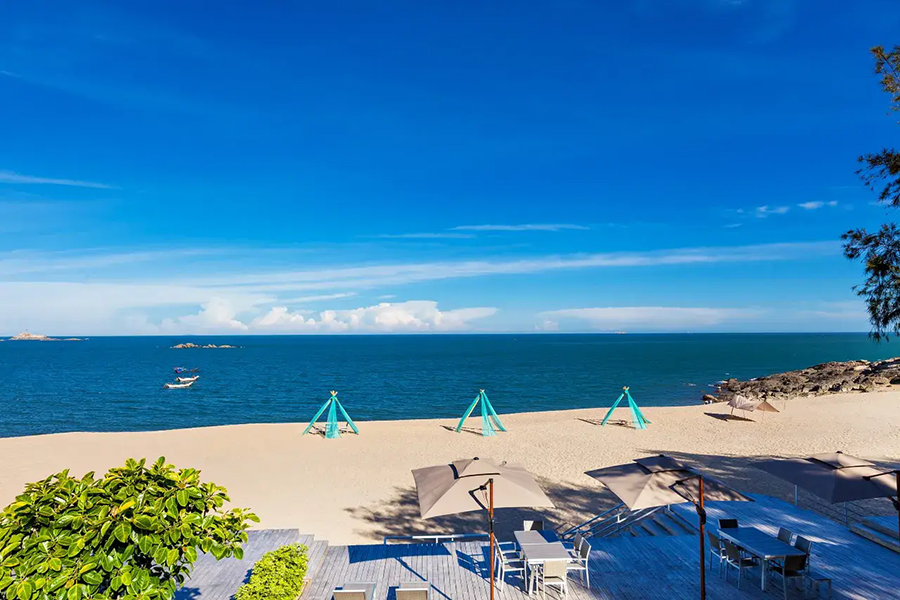 湄洲岛泊澜·心宿海景度假民宿位于福建省莆田市秀屿区宫下村牛头尾96号,就坐落于被誉为“南国蓬莱”的湄洲岛旅游度假区内(5A),这里不仅是妈祖文化的发祥地,更是一处融合了自然壮美与人文底蕴的海岛度假天堂。民宿占尽背山面海的自然优势,出门便是软的金色沙滩与无垠碧海,真正实现了“出门即沙滩”的梦想。其与妈祖祖庙、湄屿潮音、彩虹公路、黄金沙滩...等地标相邻,无论是沙滩踏浪拾贝,还是闲坐静观潮汐,这里都是一个四通八达、动静皆宜的完美基地。