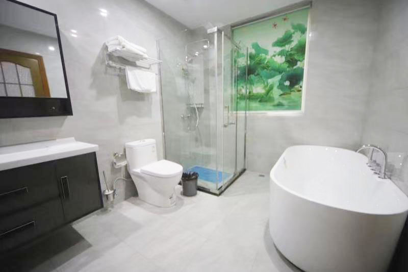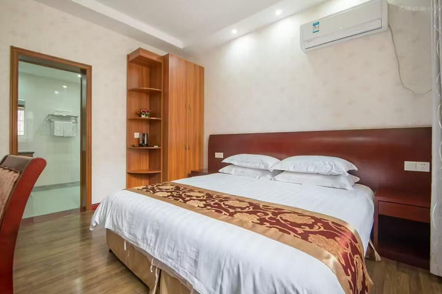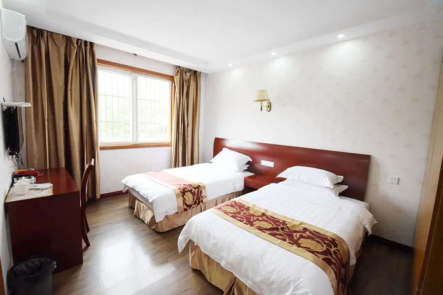 溧阳天目湖映湖阁别墅内里设有7间客房,包含5间标间、2间大床房,能同时接待14人入住。室内装修简约大方,全部按照酒店式统一标准布局,空间宽敞,采光通透。每间客房均配备独立卫浴、空调、电视、无线网等齐全设施,中央热水器保障24小时热水供应,床品严格执行一客一换,让每一位宾客都能用的安心放心,在质朴中尽显贴心与洁净。