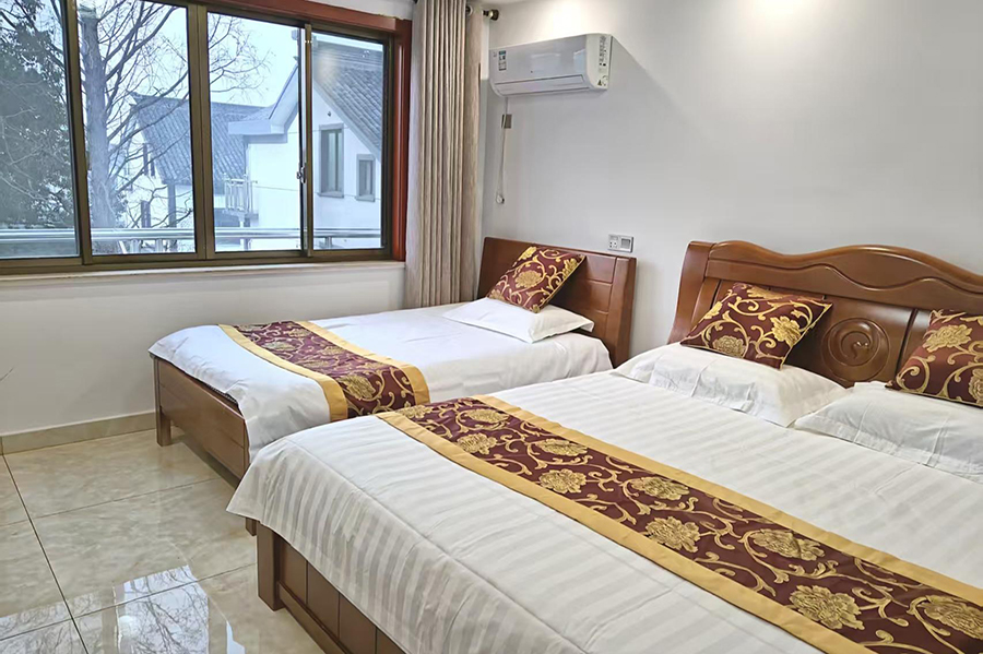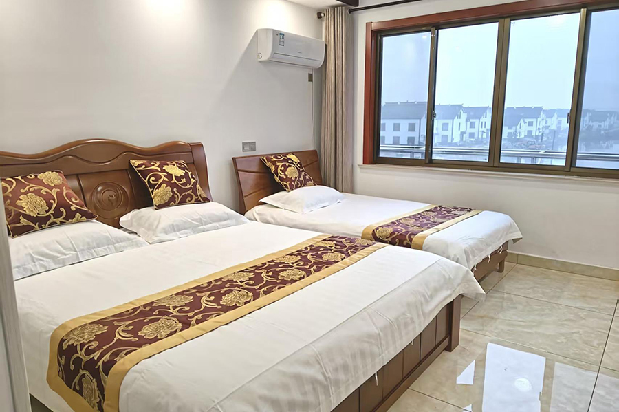 昆山周庄夏西塘农庄藏于绿意盎然的乡野间,整体采用新中式与江南民居相融的设计,白墙黛瓦映着花木扶疏,尽显水乡雅致韵味。民宿共有5间客房,含3间大床房和2间家庭间,能同时接待12人入住。住宿空间兼具复古情怀与现代舒适,素雅的原木家居温润大气,搭配温馨柔软床品,氛围安逸又闲适。齐全的硬件和生活设施,让您在欣赏田园风光的同时,也能享受现代的便利,重拾慢节奏的生活本真。