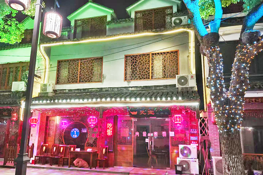 昆山周庄元宝农家乐环境雅致,整体设计深谙当地民居与复古特色,采用江南园林与新中式风格相结合的布置,白墙黛瓦、木格花窗、红灯树影,每一处都尽显江南水乡风情,这样的静谧与治愈,正是都市人心心念念的“诗与远方”。