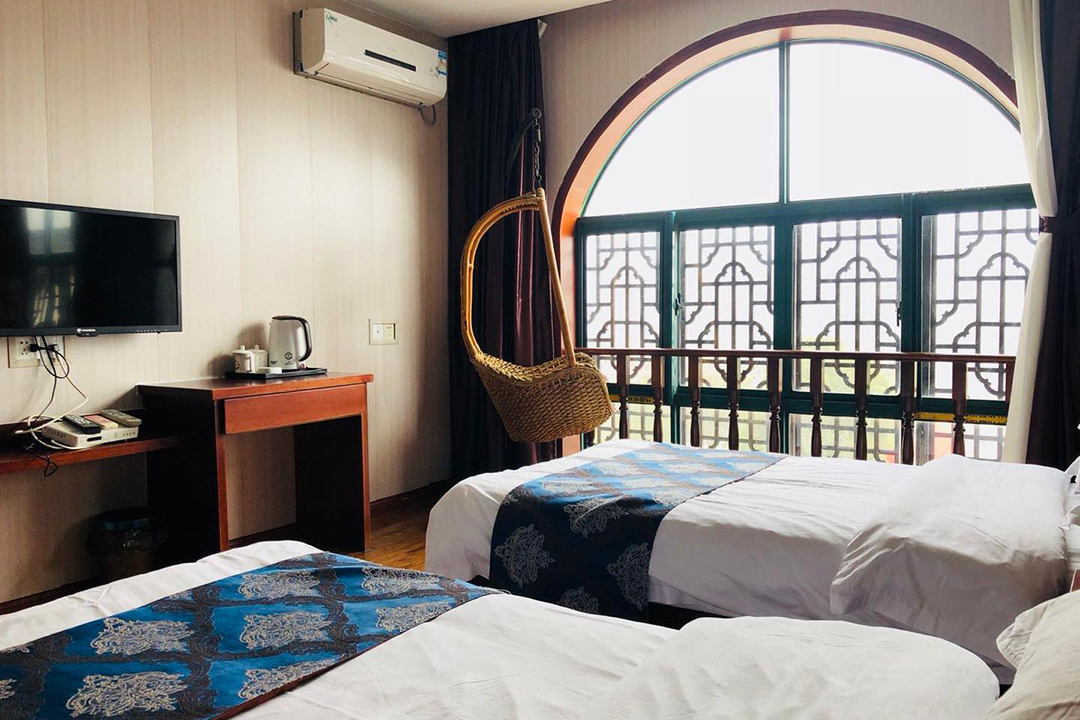 石塘竹海望月湾景观民宿巧妙地将自身融入这片天然图画中,坐拥山水之间,拥有景观平台,是集住宿、餐饮、超市、茶社、娱乐于一体的度假式休闲酒店。内里拥有9间乡村主题景观客房,能同时接待19人入住。每间客房都配备有齐全的硬件和生活设施,整体设计风格独具匠心,雕花的窗子加上通透的采光,让您不仅住的赏心悦目,更能很好的欣赏周边风光美景,推窗即是新鲜空气,体验感非常不错。