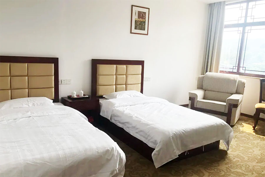 苏州西山谢龙山庄拥有优质且高端的住宿环境,提供有15间标间和4间三人间,可同时容纳42人入住;房间是高级雅致的新中式风格,铺就全屋印花地毯,配备有空调、电视、无线网、独立卫浴、24小时热水等齐全设施,居住环境整洁舒适,中式的雕花窗棂让您可以更好的欣赏园林之美,入住体验非常不错。