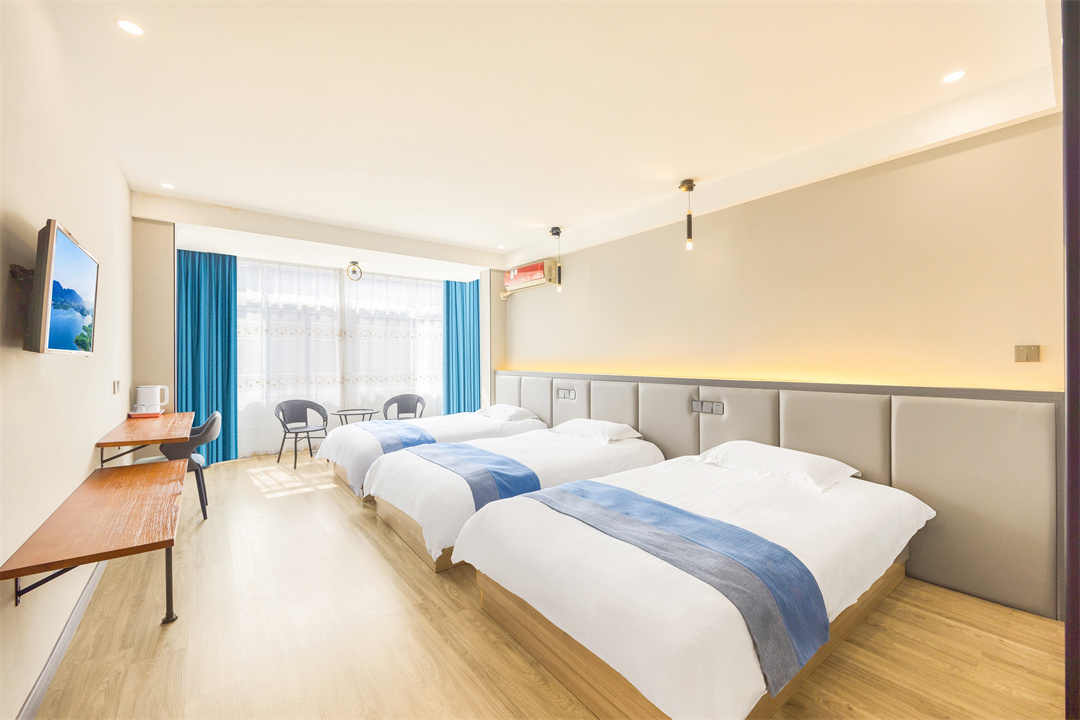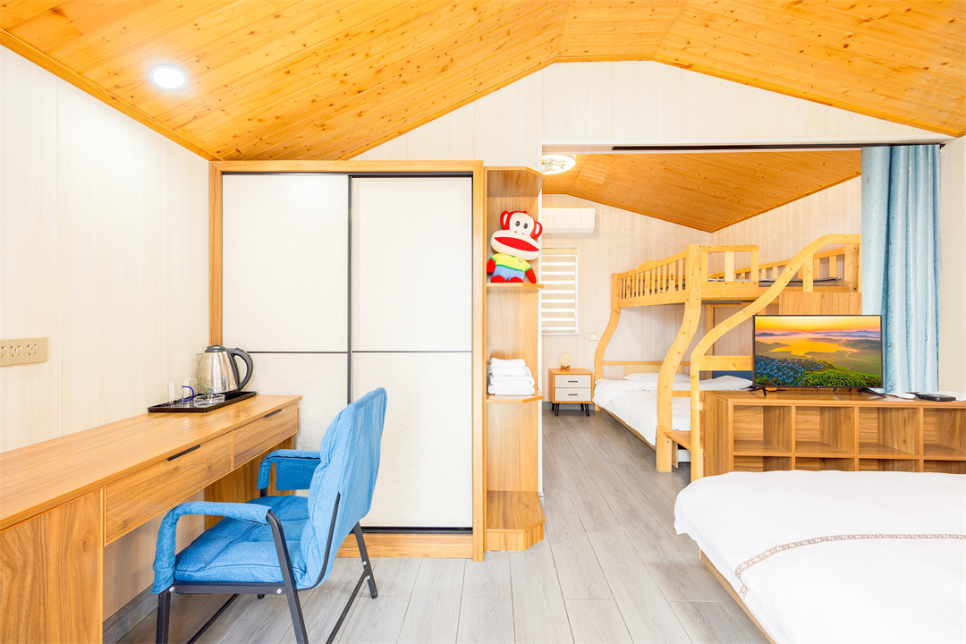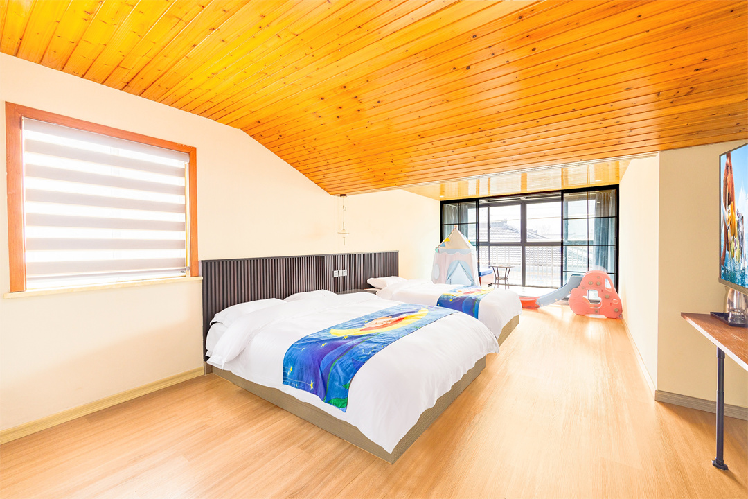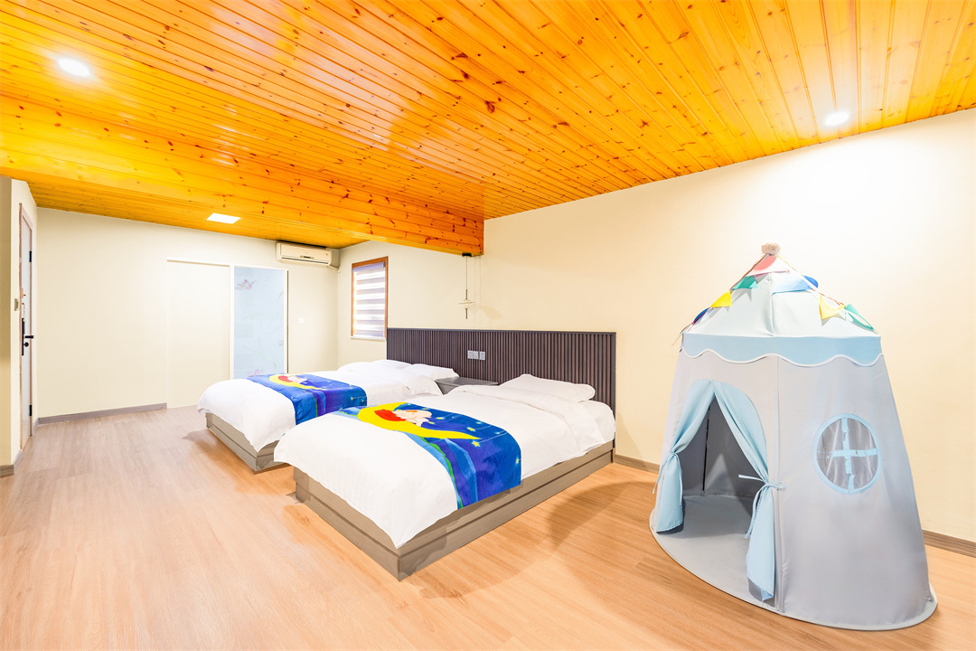 客房规格:2间标间、2间大床房、3间亲子间、2间家庭房