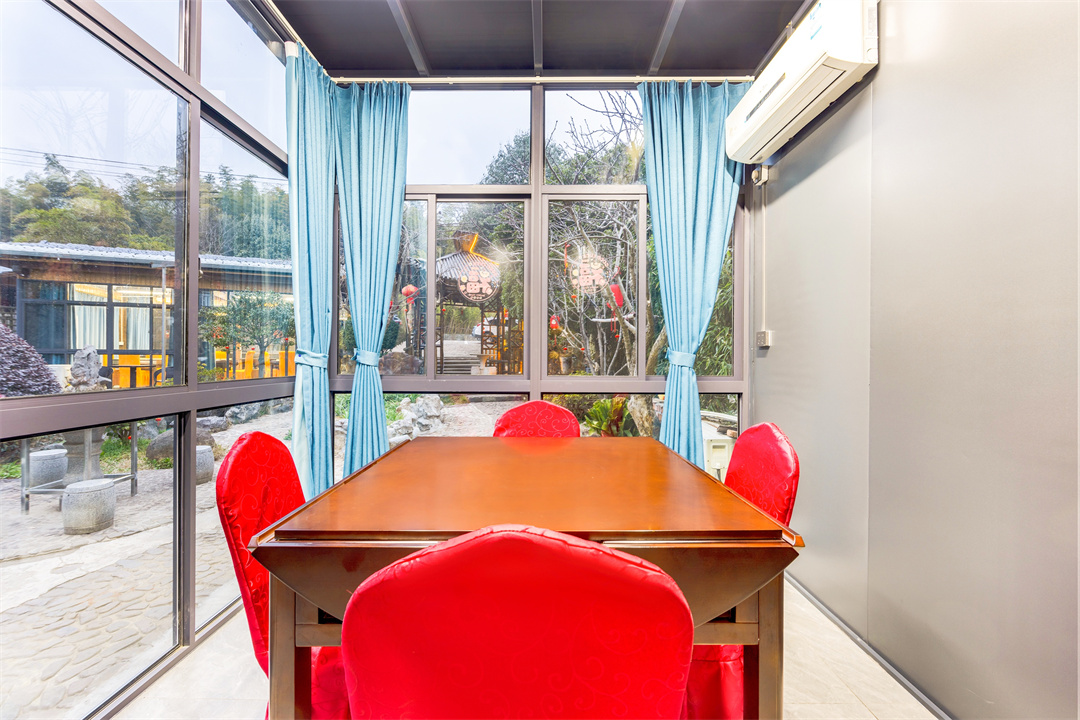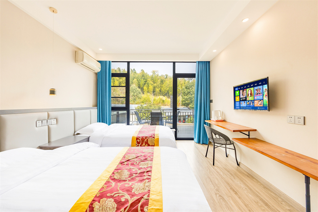 阮氏酒家农家乐规模适中,共有9间客房,为您提供有标间、大床房、亲子间等不同规格,可同时容纳23位宾客入住。每间客房都是按照酒店式统一布局,装修风格各不相同,均配备有齐全的硬件和生活设施,并安装有明亮的落地观景大窗和独立阳台,可满足不同年龄游客的住宿需求,为您带去一个理想的住宿体验。