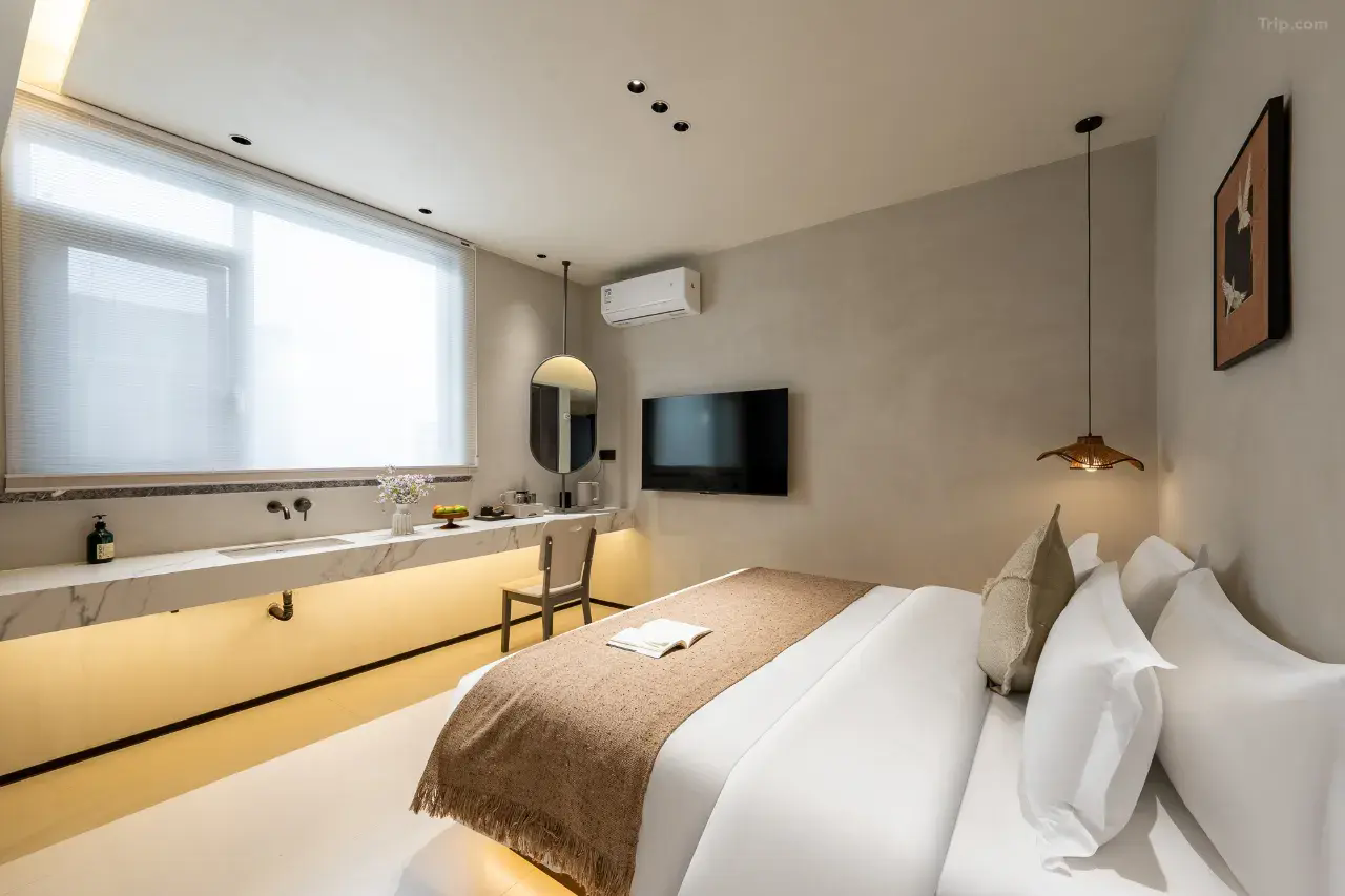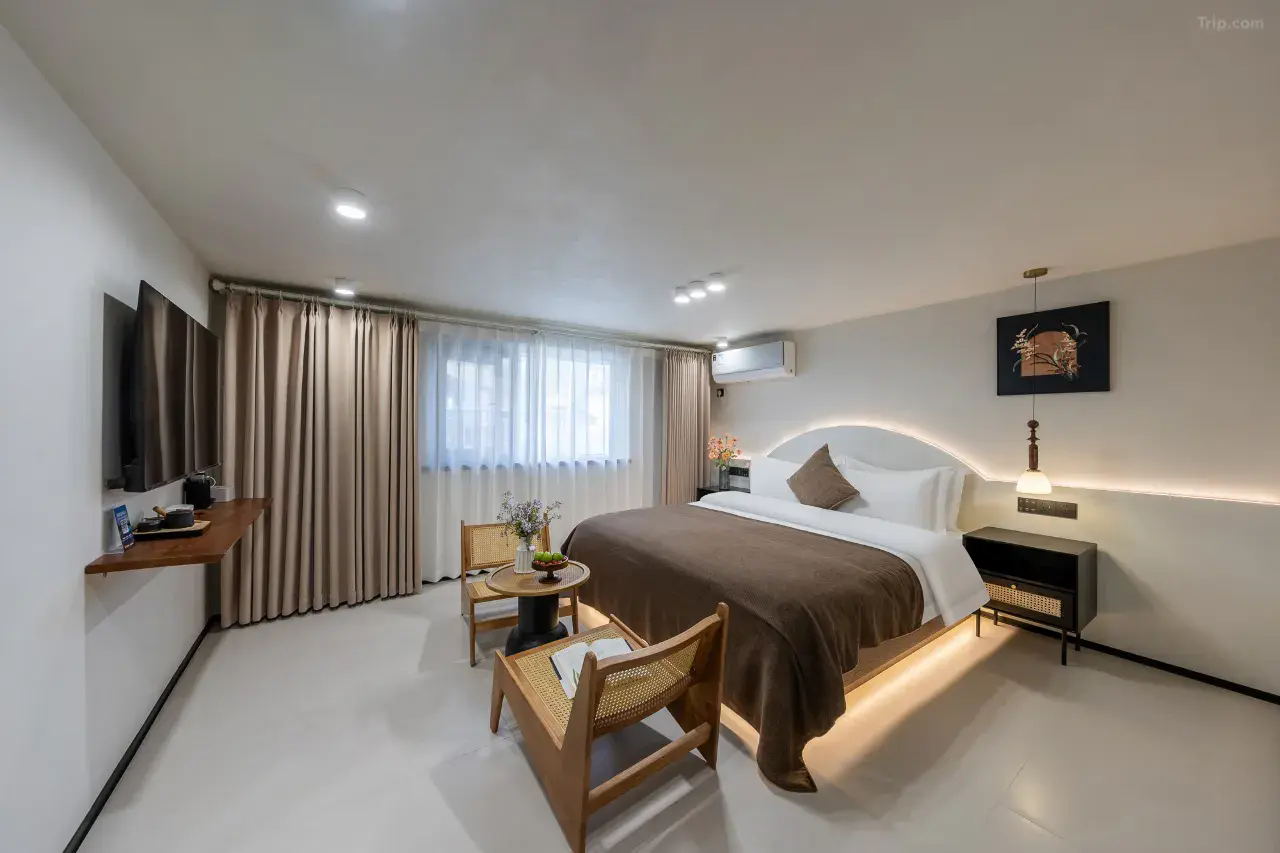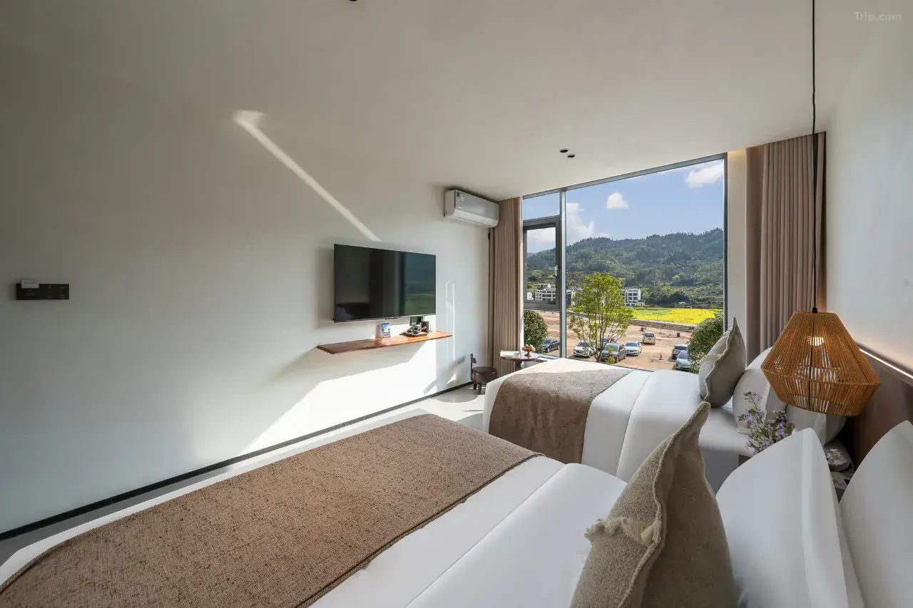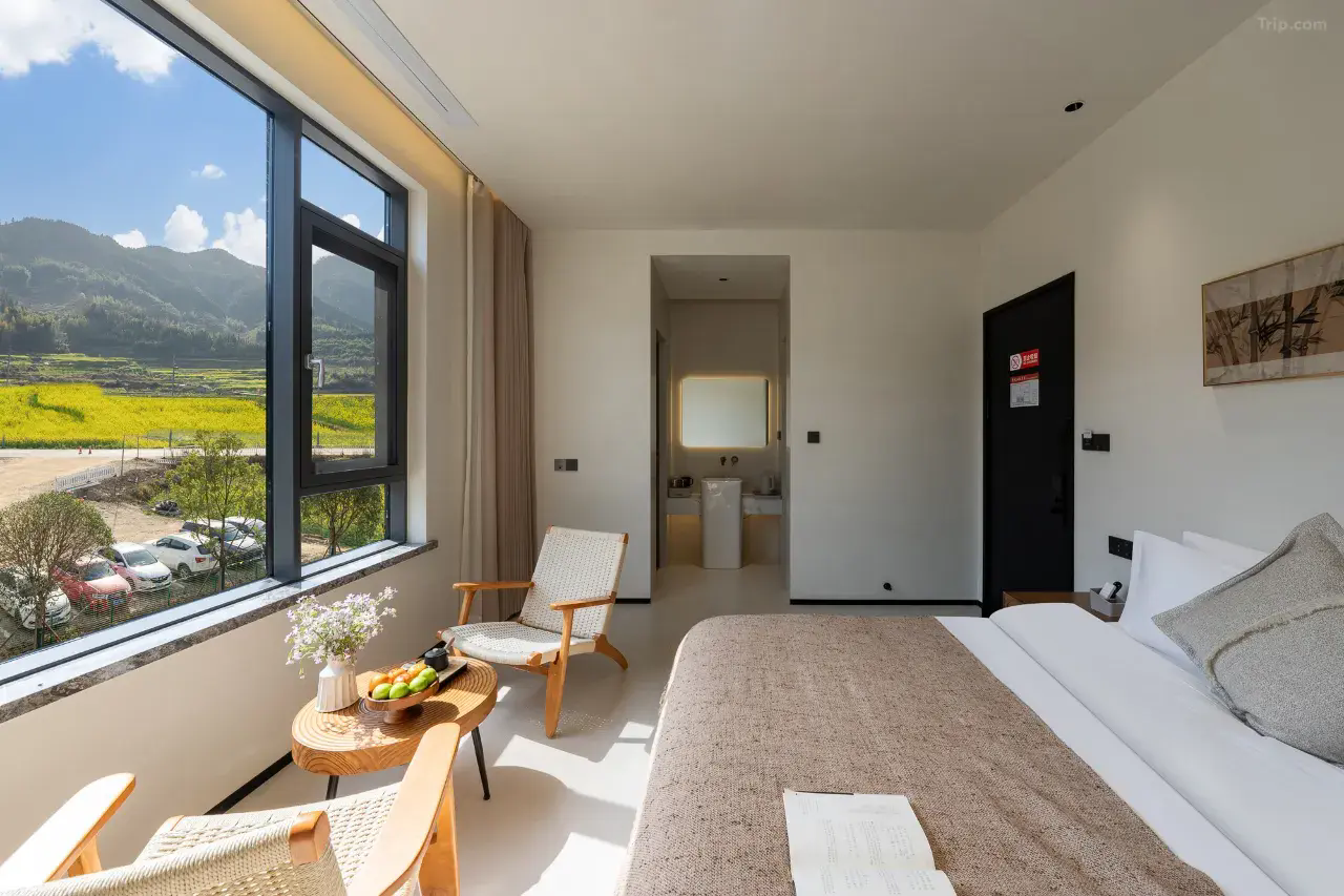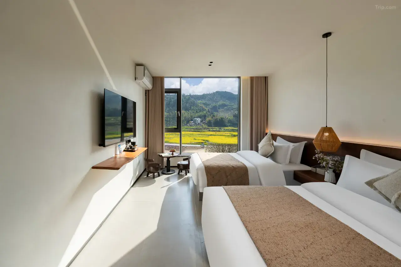 婺源清风·山语美宿规模适中,提供有9间优质客房,包括有2间标间、5间大床房和2间套房,可同时接待22人入住;房间布局通透明亮,配备有空调等齐全的硬件设施,全部采用古朴雅致的新中式田园设计,环境素雅简约,大气精美,拥有绝佳的入户观景视野,足不出户就能将山间云雾之美尽收眼中,无论是拍照还是赏景,体验感都是超棒的!
