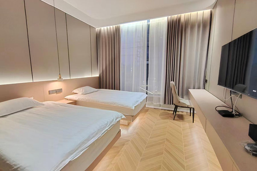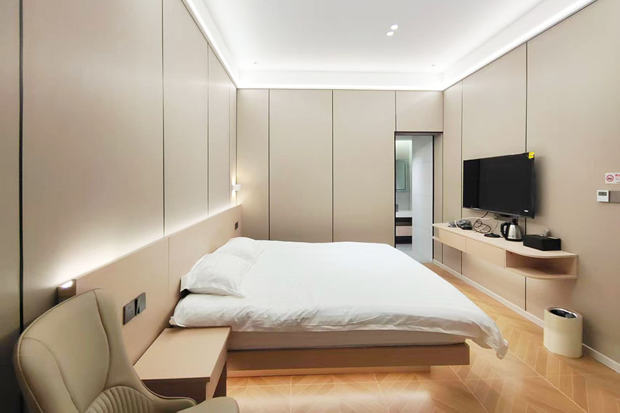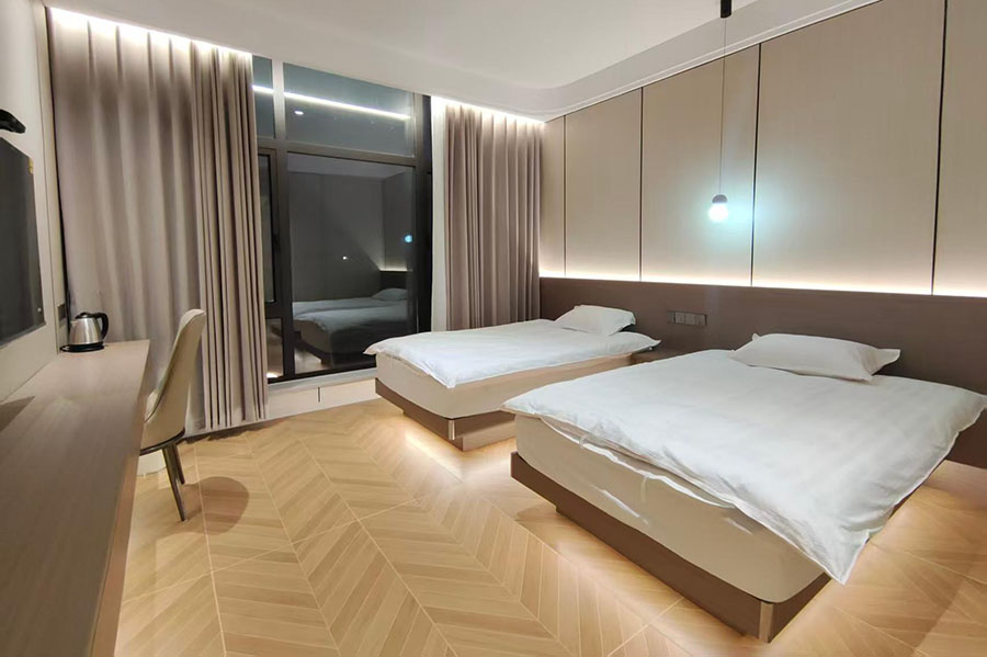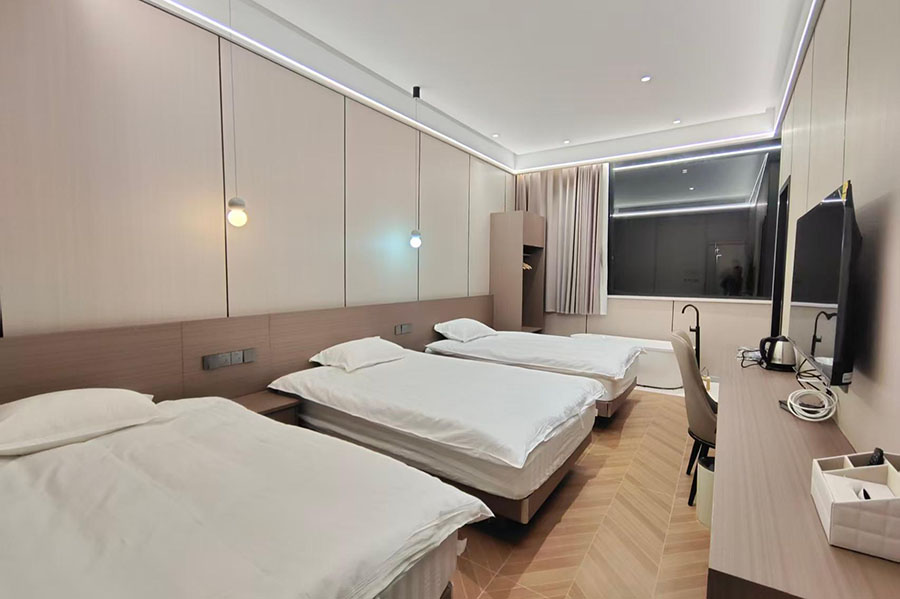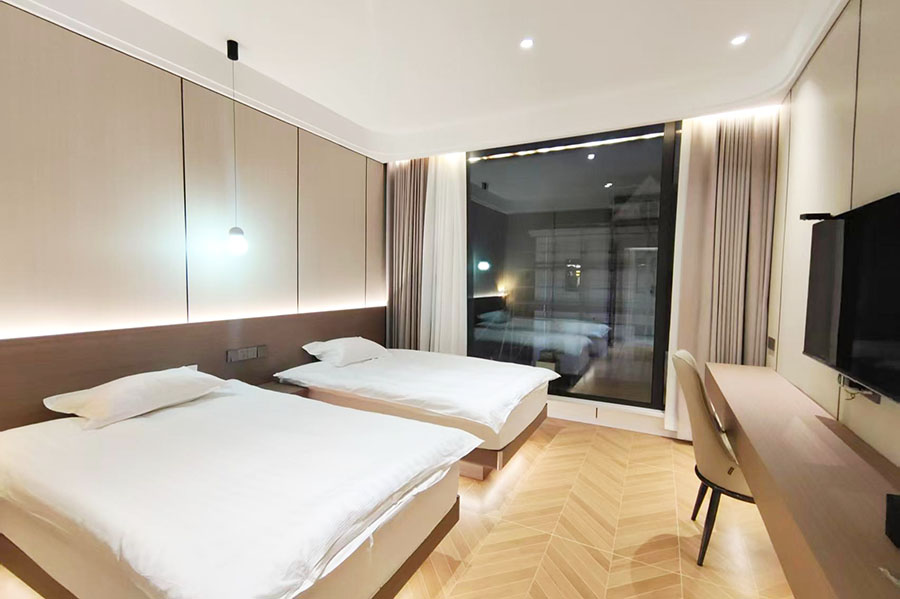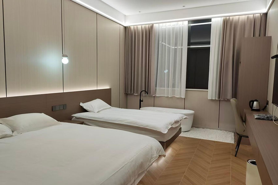 崇明刘家村汉佳苑民宿规模适中,共有20间客房,设有标间、三人间、大床房等多样化房型,能同时接待46位宾客入住。房间属现代极简风格设计,环境清新素雅,原生木色的家具让空间更加温润,大飘窗的设计足不出户就可赏田园风光与袅袅炊烟。客房内设施一应俱全,智能卫浴、无线网、浴缸、24小时热水等,兼具舒适与格调,让您晨起在鸟鸣中苏醒,夜晚伴星光而眠。