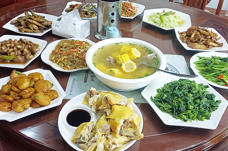 注: 1、单人单住房间补40元/人 2、多吃一正餐+30元/人,少吃一正餐-20元/人 3、10人餐标:10菜1汤(3荤7素)