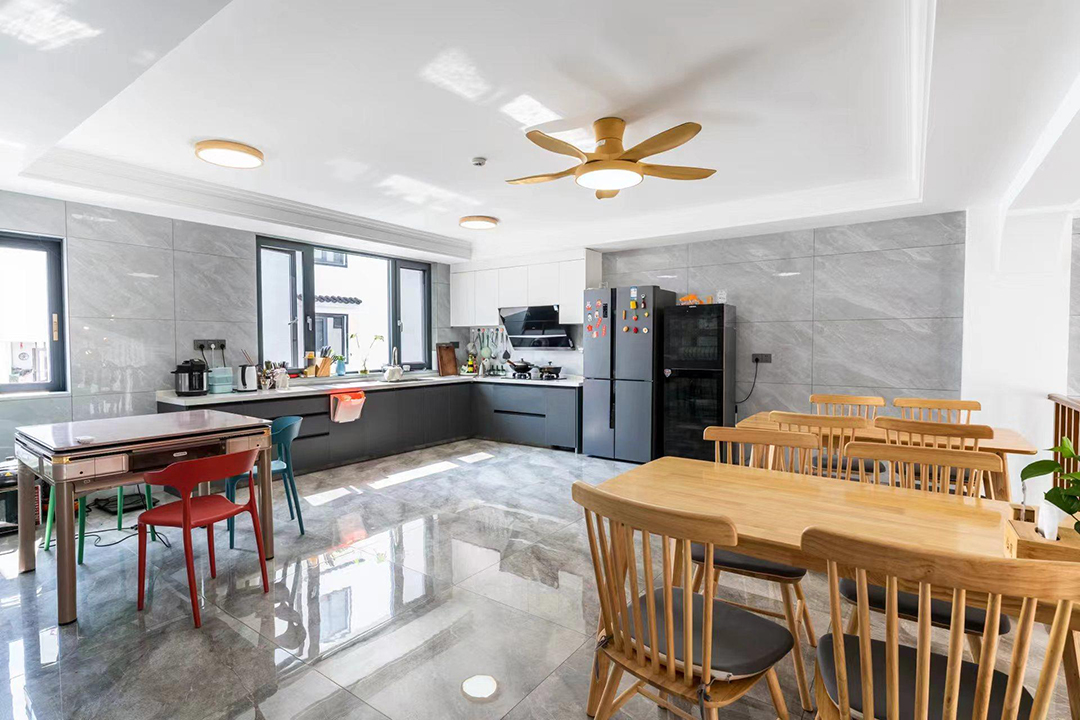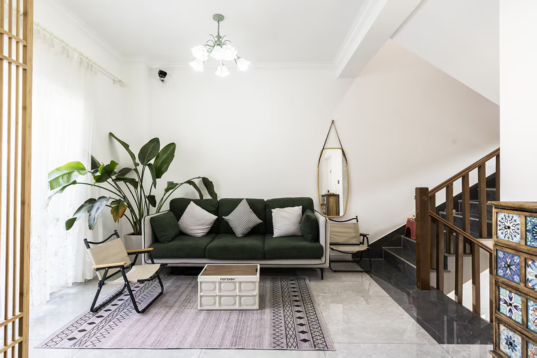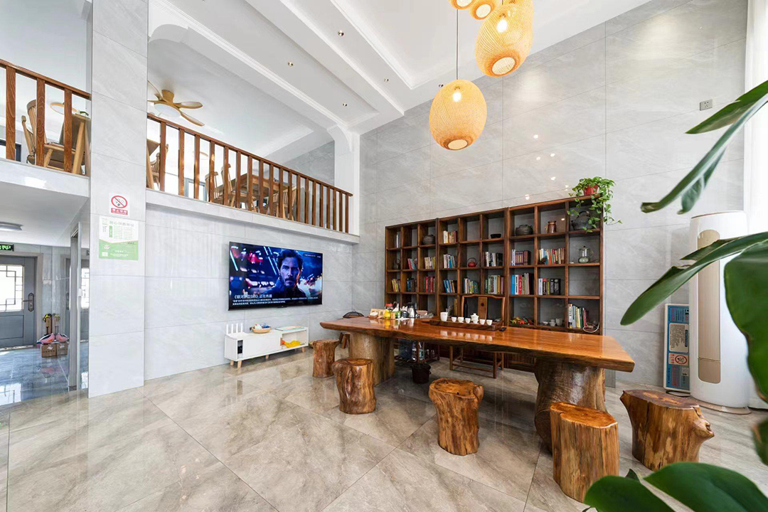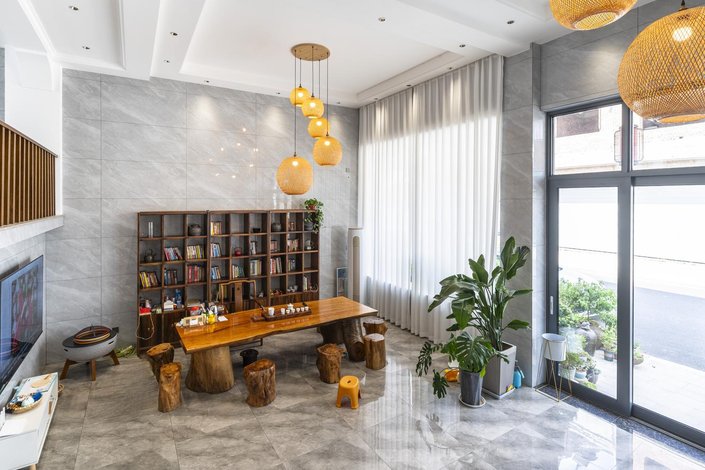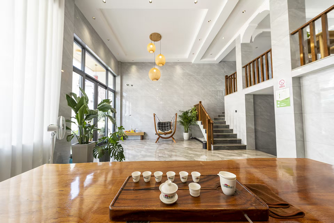 武义隐草芦·伍间民宿依山傍水娥江,在设计上巧妙融合了现代舒适与东方美学,为您营造一处静谧且雅致的休憩空间。远看是一座在花团簇拥下的现代别墅建筑,走入其中,挑高的设计和宽敞的大厅布局让人眼前一亮,内里设有充足的公共休闲空间,茶台、摇椅、沙发、绿植以及儿童玩具摆放的恰到好处,简简单单却充满了故事感。当暮色四合,庭院中的灯笼次第亮起,坐在露台上看山雾渐起、远峰如黛,成为一天中最惬意的时刻。