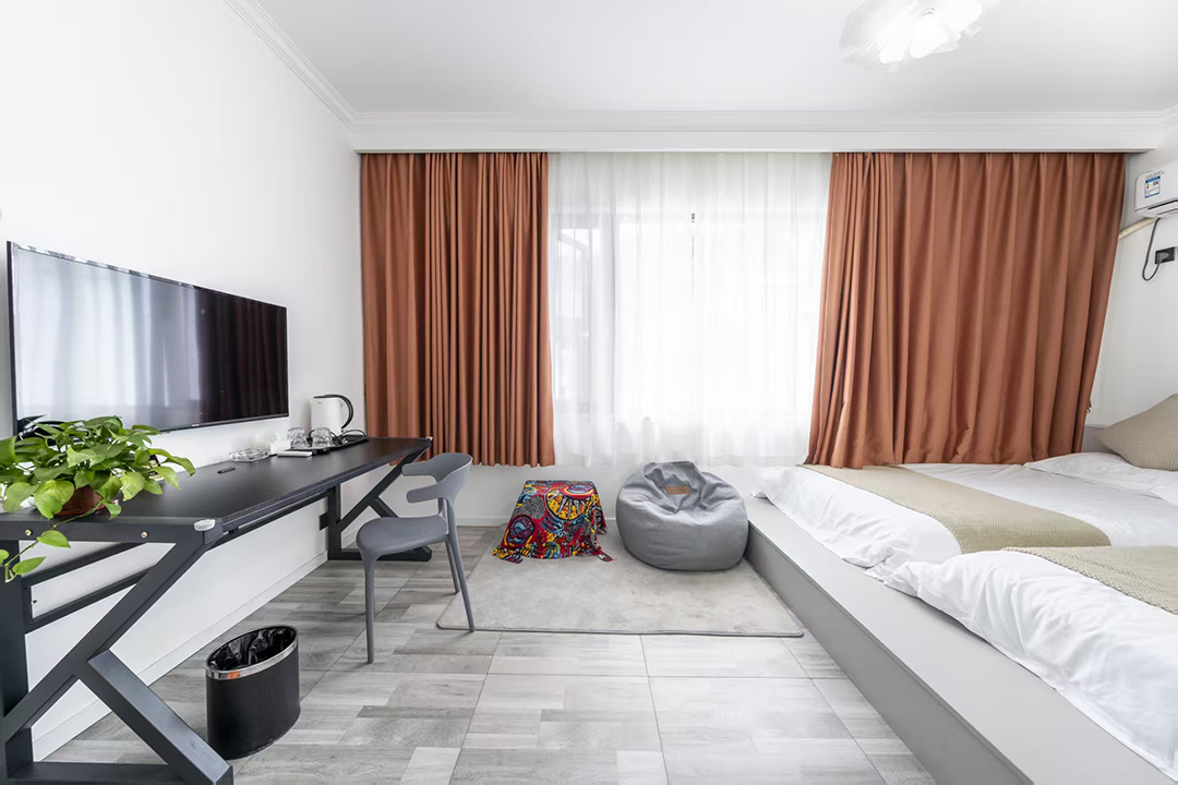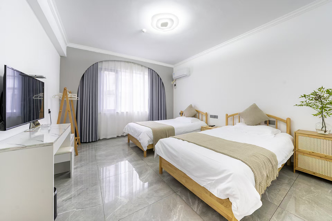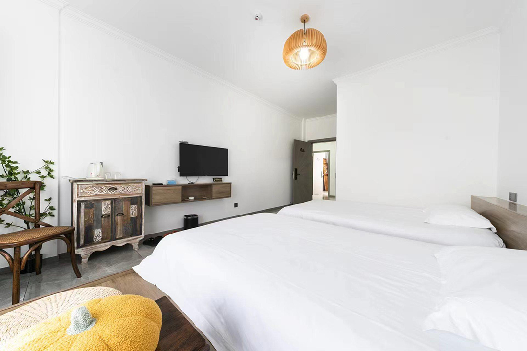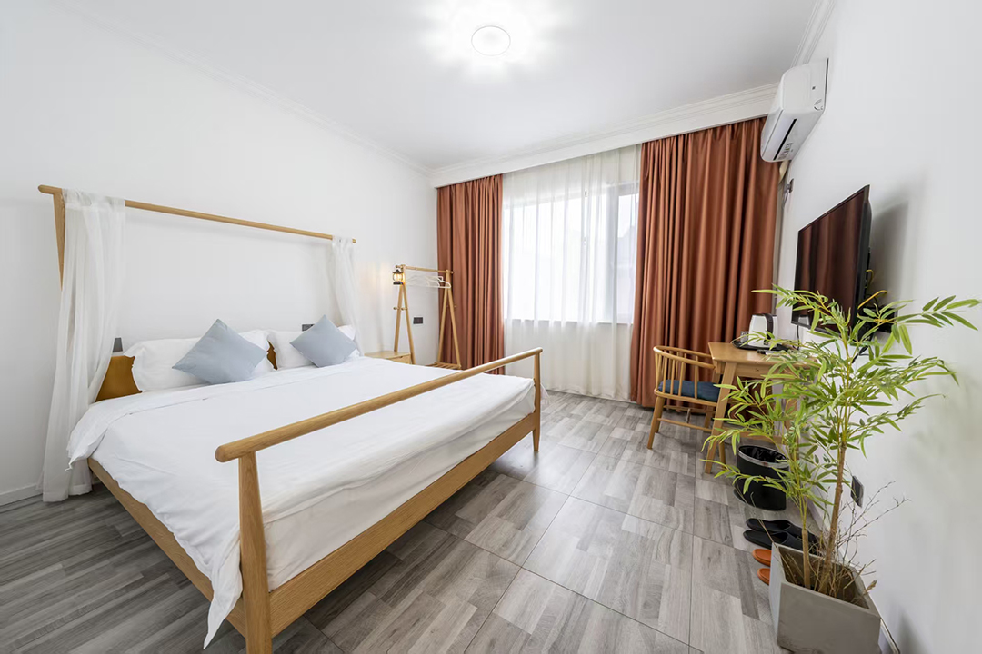 武义隐草芦·伍间民宿共有10间客房,提供有8间标间和2间大床房,能同时接待20人入住、就餐。房间采用简约田园的设计风格,均配备有空调、液晶电视、无线网、独立卫生间、24小时热水等设施,配色清新淡雅,室内空间通透敞亮,多选用原木家居和极简风家具,在视觉和感官上都为您带去一个干净整洁之感,部分房间还设有飘窗茶台,闲暇之余,您可以和朋友家人对坐品茶,尽享这度假的惬意时光。