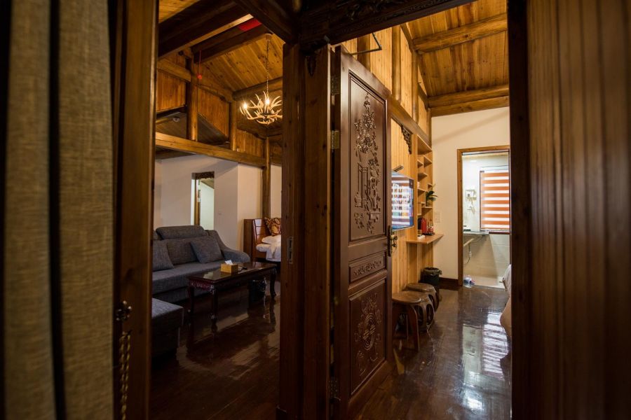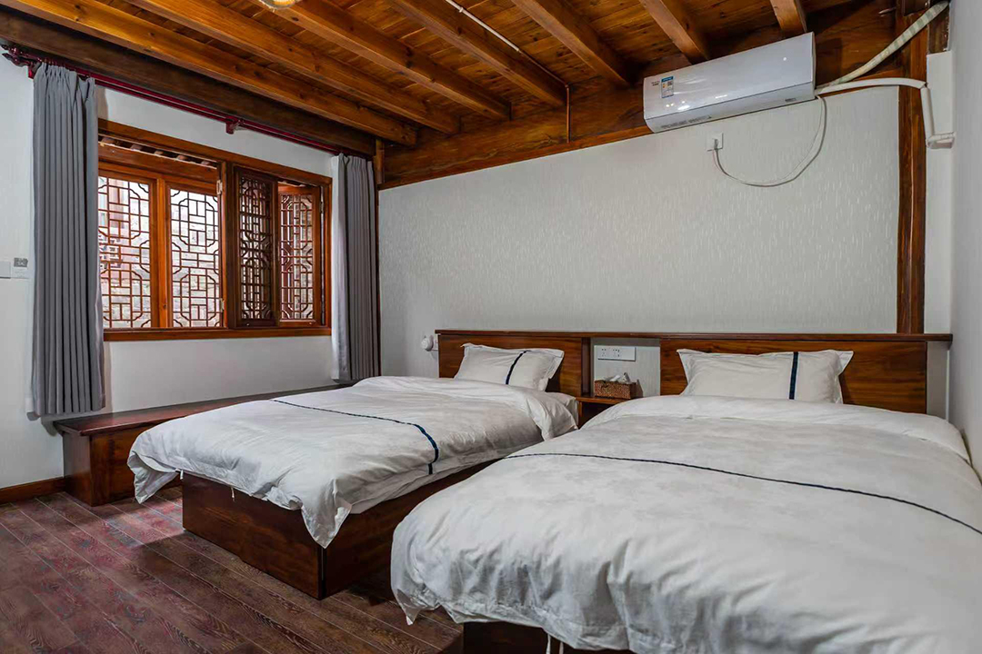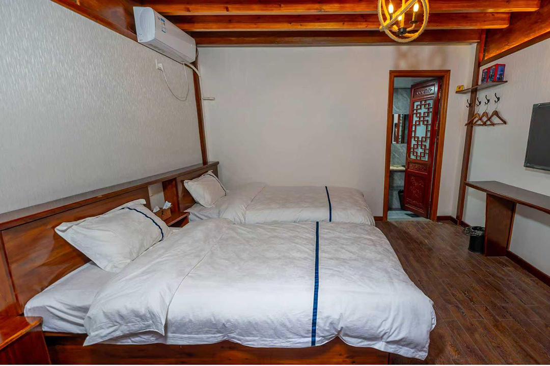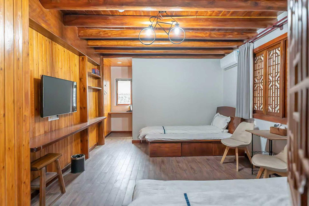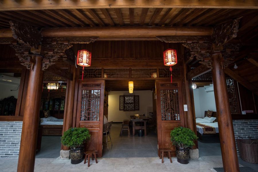 舒松客栈是在古老的宅院基础之上进行改造,外形特色不变,飞檐黛瓦,雕梁画栋,复古的镂空窗棂,全实木的梁柱房椽,每一处都是先人智慧的象征。客房整体规模适中,能够接待14人同时住宿,5间主题客房装修精致大气,分为古风塘,观塔阁,茗香苑,木雕房,望鹿轩,充满古老的中式复古风格。与房屋的整体外部风格相比,卧室显得现代时尚一些,多以实木造型装饰,宽敞舒适的大床,如软亲肤的床品,还有齐全的生活设施,无一不在彰显着民宿老板的周到细腻。