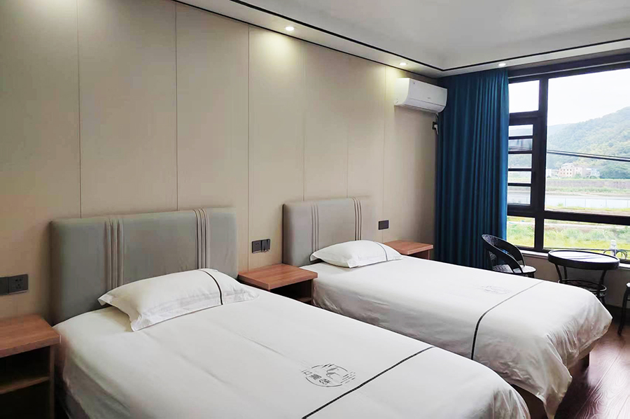 宁海云湘缘民宿环境雅致,是典型的乡村别墅建筑,庭院内青砖铺地,小巧美观,四季皆有风情。民宿装修融中式古韵与现代轻奢于一体,内里提供有10间舒适客房,设有4间标间、6间大床房,能同时接待20人入住。客房布局通透舒适,整体陈设精致考究,柔软床品亲肤透气,现代化设施一应俱全,既有家居生活的温润质感,又不失现代旅居的便捷舒心,让您在这里推窗即揽山景溪色,尽情享受美好的度假时光。