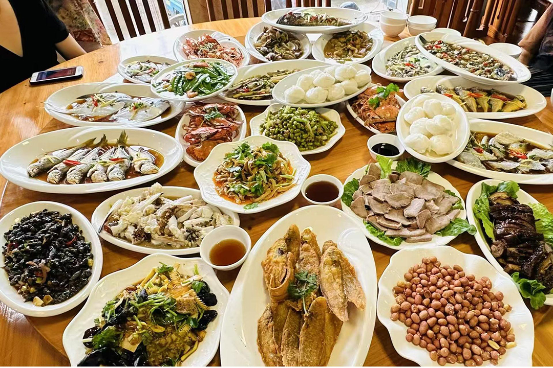 象山大塘启运民宿拥有能接待70人的大规模餐厅,每天会精选现捕现捞的鲜活海产,由专业厨师掌勺烹饪,像清蒸大白蟹、红焖大明虾、雪菜煮黄鱼、胖头鱼...等,都是当地不能错过的经典风味,不仅食材独特,烹饪方法更是考究,口感绝对是鲜而不腥、肥而不腻,令人回味悠长。