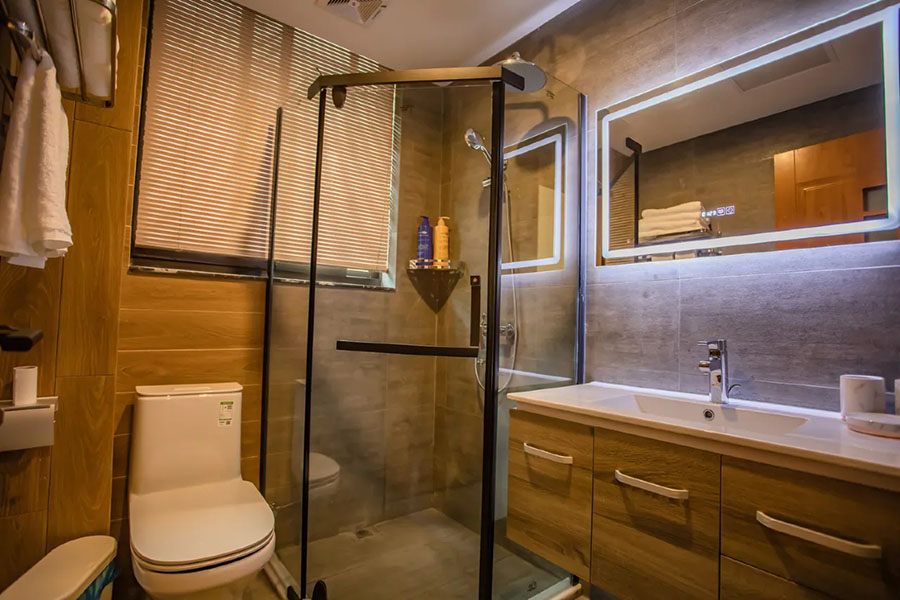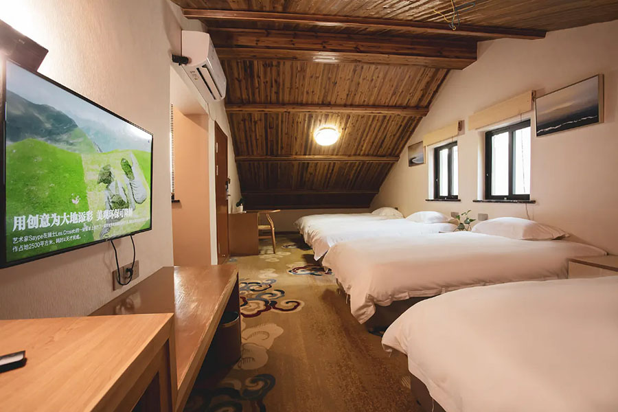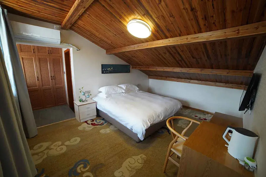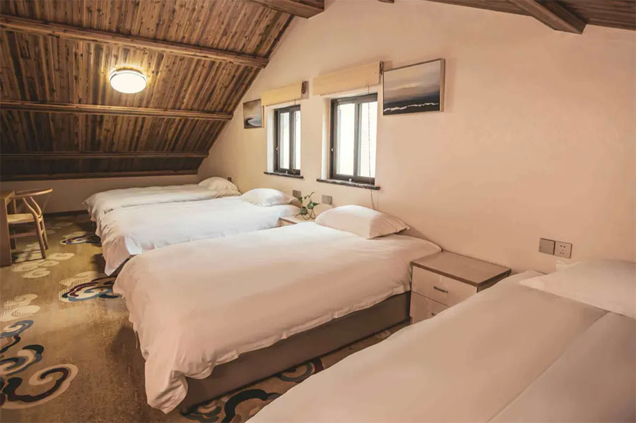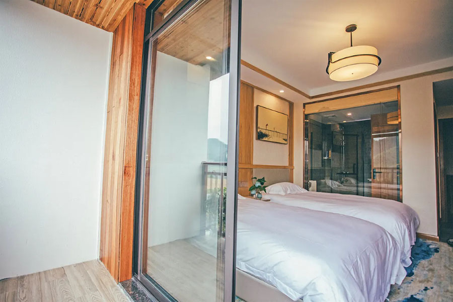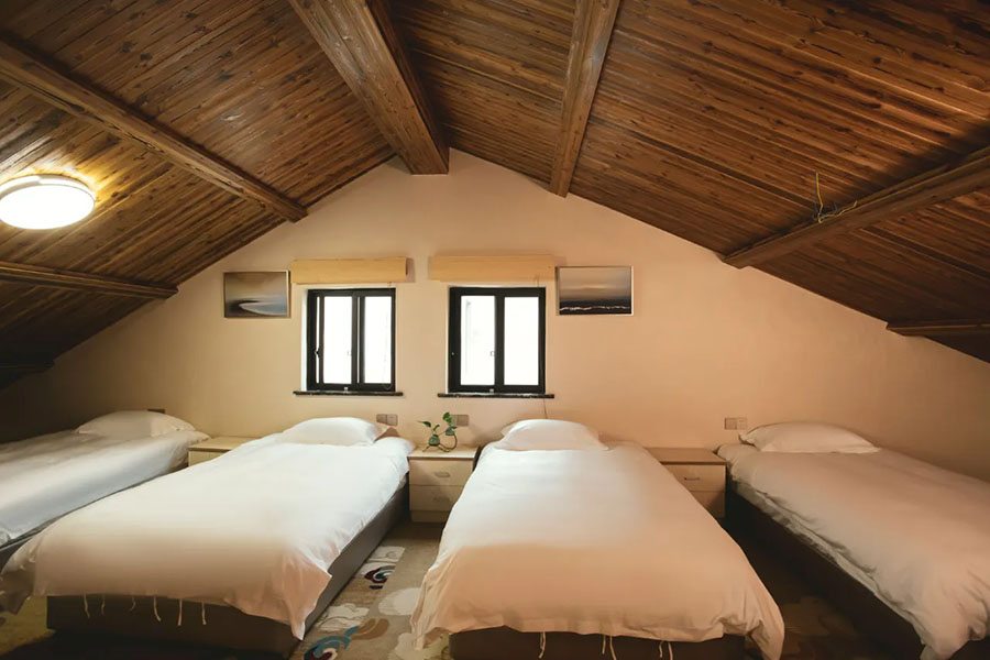 淳安千岛湖汐若民宿规模适中,共有19间客房,设有15间标间、3间大床房和1间四人间,能同时接待40人入住。每间客房都独具匠心,采光通透开阔,推窗即揽湖景风光,复古田园风的设计和素雅的中式装修很是养眼,宽敞的格局搭配柔软亲肤的床品,让人卸下旅途疲惫。这里卫生间全部做到干湿分离,且设施一应俱全,细节处尽显贴心,愿您在这里尽享家庭的温馨与舒心。
