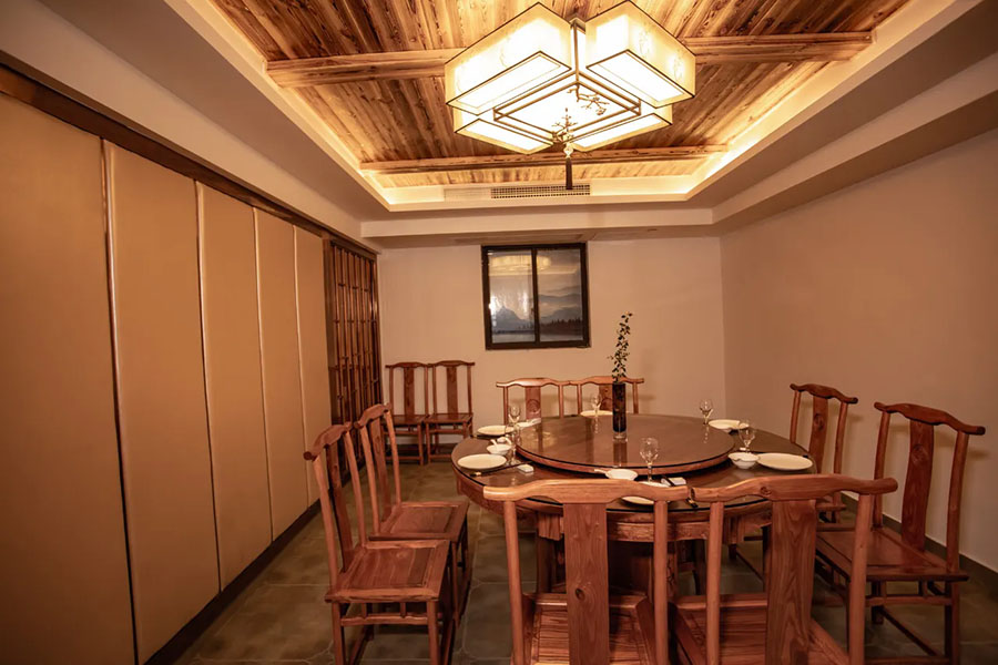 淳安千岛湖汐若民宿餐厅设置在一楼,能同时接待60位宾客就餐。其在餐饮上主打“鲜从湖来,味自农家”的特色风味,特色菜包括有千岛湖有机鱼头、石锅豆腐、外婆菜饼、梅干菜扣肉、剁椒鱼头...等,精选本地新鲜食材,采用传统的烹饪手法,为您呈现独属于淳安的地道风味,让味蕾与身心一同沉醉。