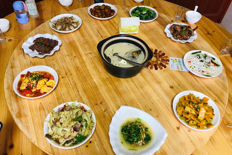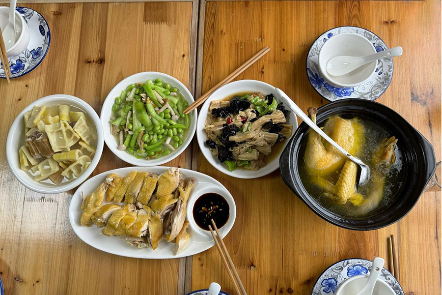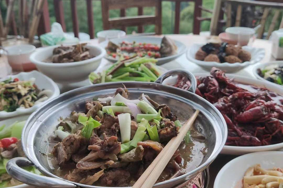 余杭山沟沟红佳园山庄在菜品的制作上也十分讲究,以当地农家土菜为主,佐以各色小炒和山野珍馐,像土鸡煲、笋干烧肉、清炒时蔬、小溪鱼干、农家豆腐等,每一道都独具山野风味,食材均取自本地山林与自家菜园,保留食材最本真的味道,让您吃的健康、吃的营养、吃的美味,尽享江南农家的淳朴风味。