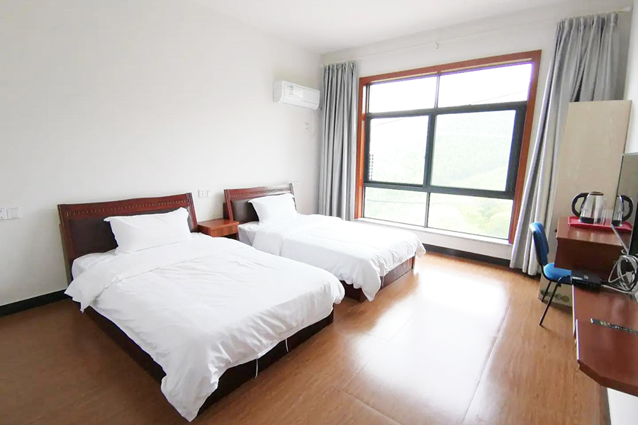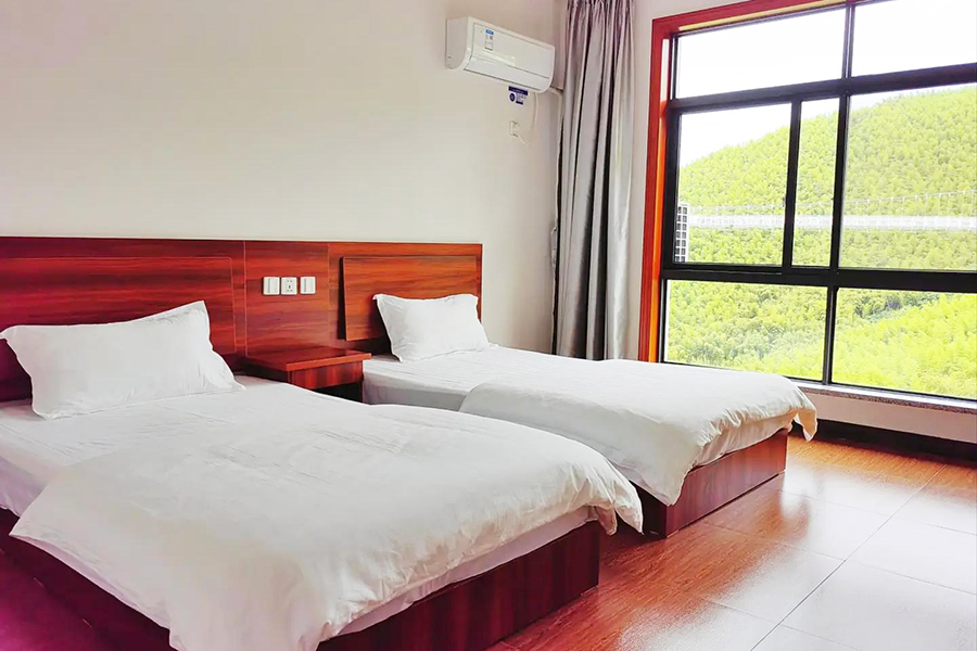 余杭山沟沟红佳园山庄背靠苍翠竹海而居,有着绝佳的地势和赏景视野,门前就是公路,不仅停车房间,自驾出行也极为便利。山庄是独栋的三层别墅建筑,装修简约大气,整体融合了新中式乡村与现代设计,内里为您提供有10间舒适客房,设有6间标间和4间大床房,能同时接待20人入住、就餐。每间客房都配备了齐全的硬件和生活设施,采光通透,布局精致美观,全部采用大床设计,部分房间还拥有独立的观景阳台,可将连绵远山与竹海尽收眼底,沉浸式体验山居生活的静谧与惬意。