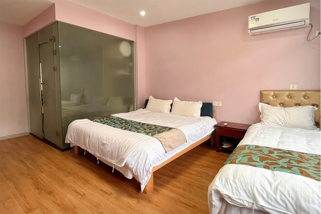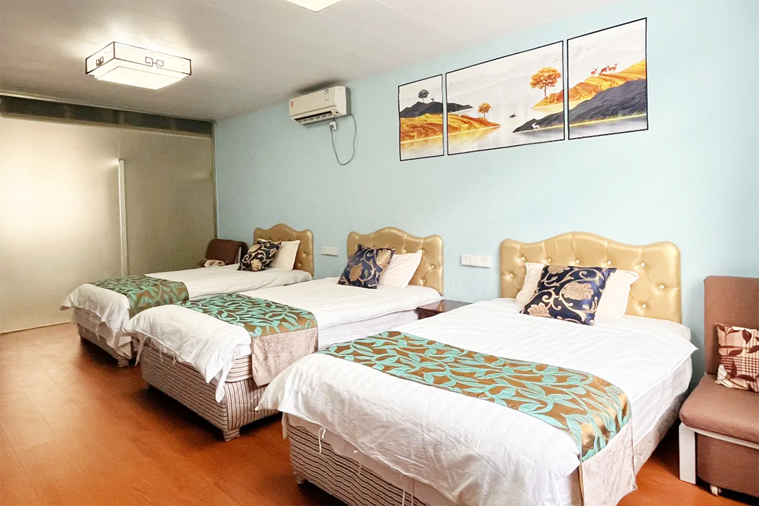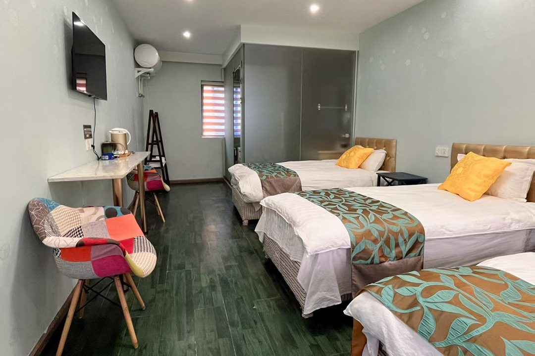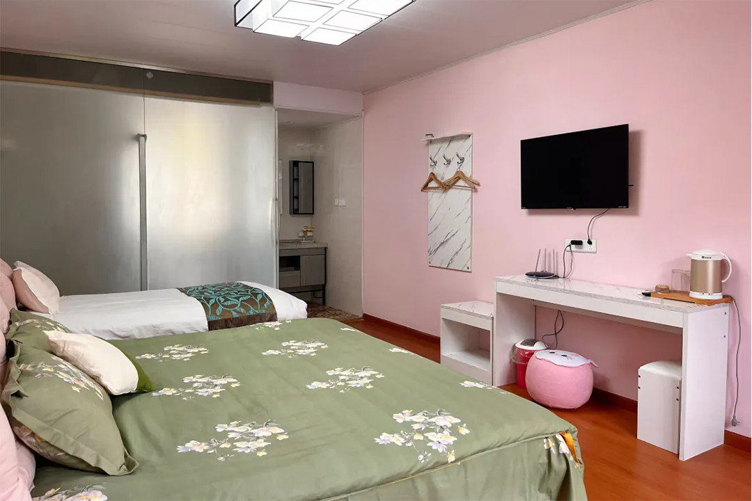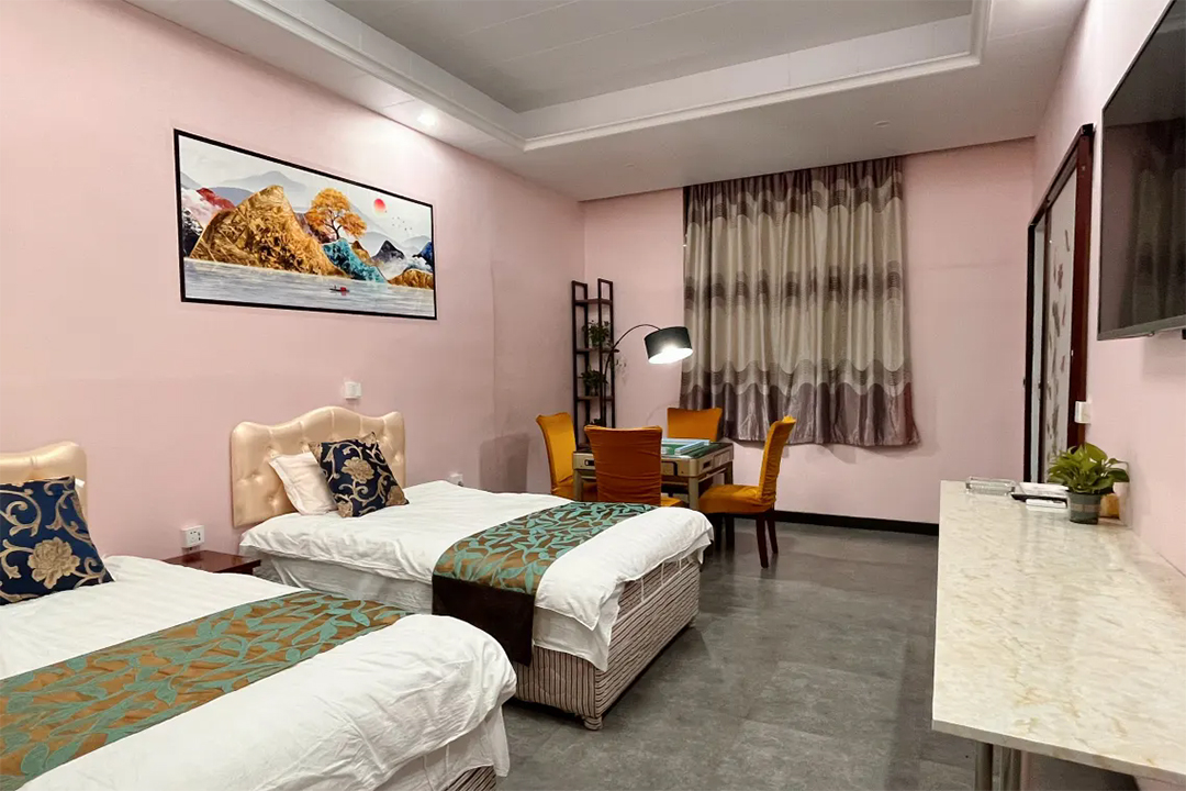 余姚松阳山庄规模适中,共有10间舒适客房,提供有4间标间、2间大床房、2间三人间和2间亲子间,能同时接待24人入住。山庄内部是新中式结合了现代风格装修,每间客房都采用不同配色,全部按照酒店式布局,配备有空调、电视、无线网、独立卫浴等齐全设施,居住氛围温馨舒适,环境整洁清爽,床单被罩全部一客一换,让前来游玩的您,都能有一个最理想的居住体验。