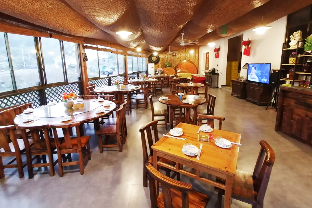 余姚松阳山庄的餐饮体验更是一场舌尖上的盛宴。山庄内设有独立的就餐大厅,能同时接待80位宾客入住。其在饮食上推崇“绿色健康”理念,食材多来自自家种植的有机蔬菜,像笋干烧肉、黄鱼面、黄米粿、煨盐鸡...等,烹饪细致,口感正宗,每一道都承载着余姚的风味,山海滋味尽在其中。