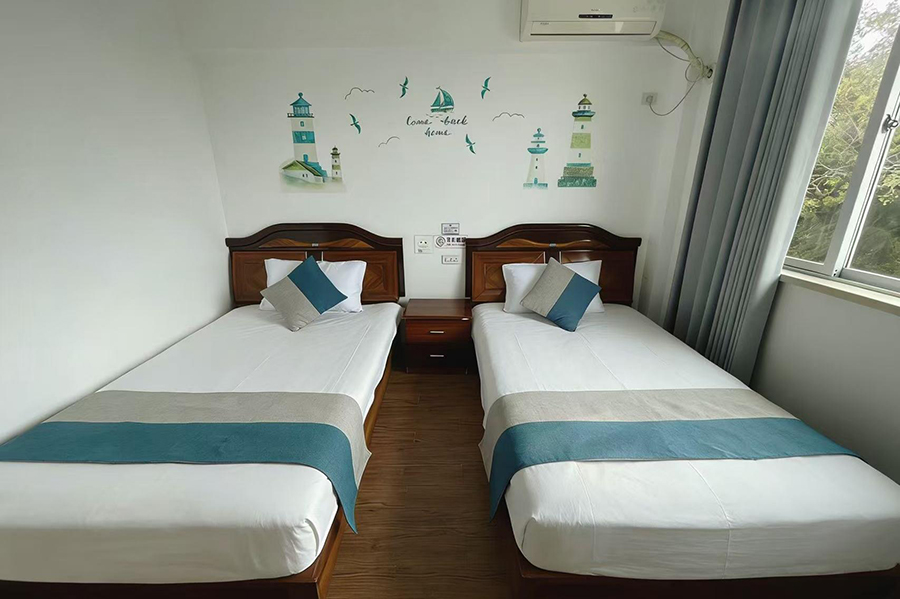 洞头仙叠岩大自然农庄(雨辰民宿)规模适中,共有20间客房,提供有16间标间、4间大床房,能同时接待40人入住。房间环境整洁,整体属现代风格设计,空间明亮通透,均配备有空调、电视、无线网、独立卫浴、24小时热水等齐全设施,床单被罩全部一客一换,并及时消毒,保证您入住的整洁和舒适度,让您在这里享受到家一般的温暖。