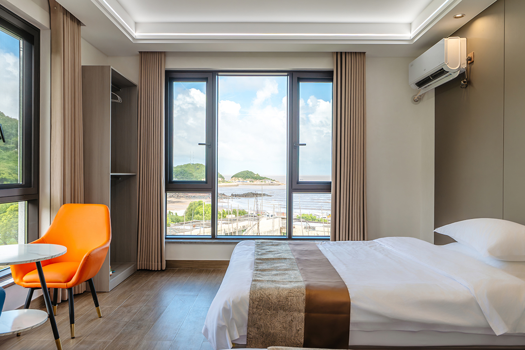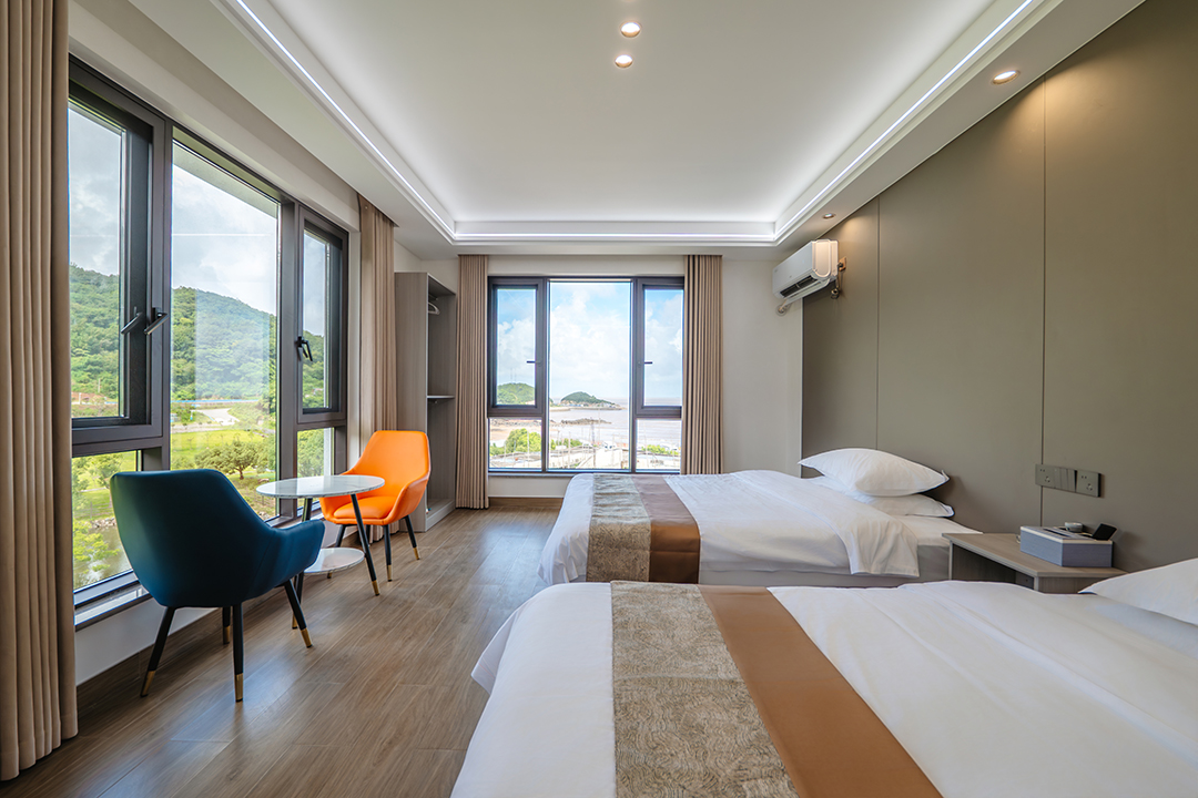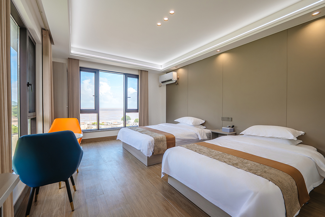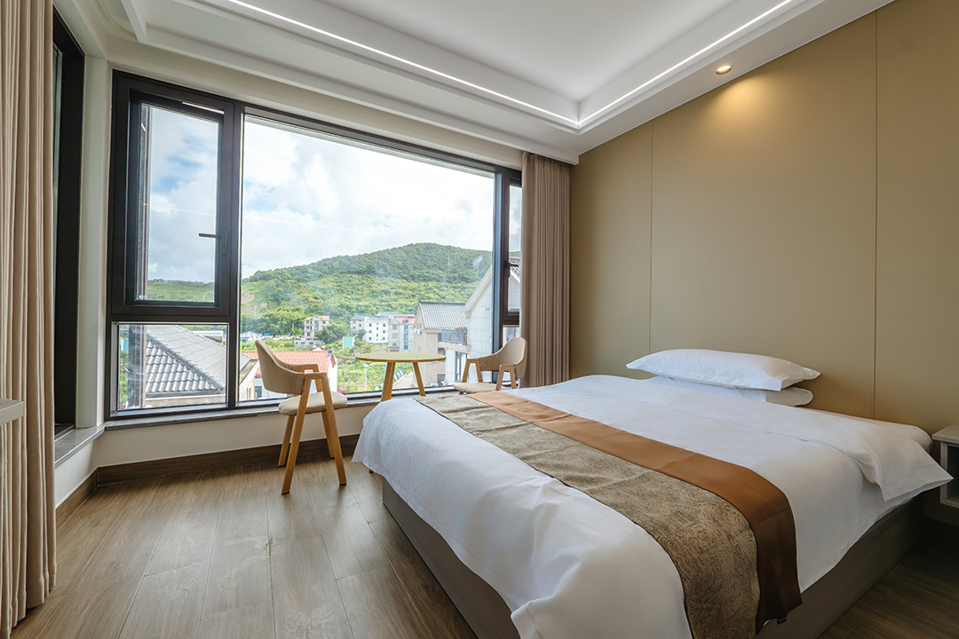象山依山伴海民宿共有12间客房,设有1间双床房、2间大床房、3间亲子间、5间海景房和1间家庭套房,可同时接待27人入住。客房大部分都配有大面积落地窗,让您足不出户就能包揽山海美景,享受温暖假日阳光。同时每间客房都配备有干湿分离的独立卫浴,空调、电视、无线网等设施一应俱全,满足您日常生活的同时,也让您能享受到最安心的居住体验。