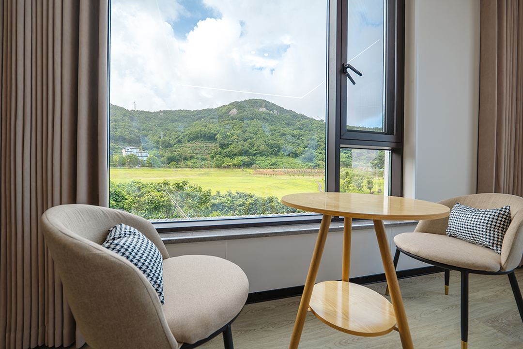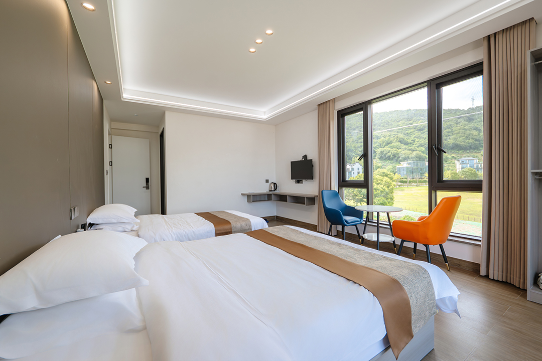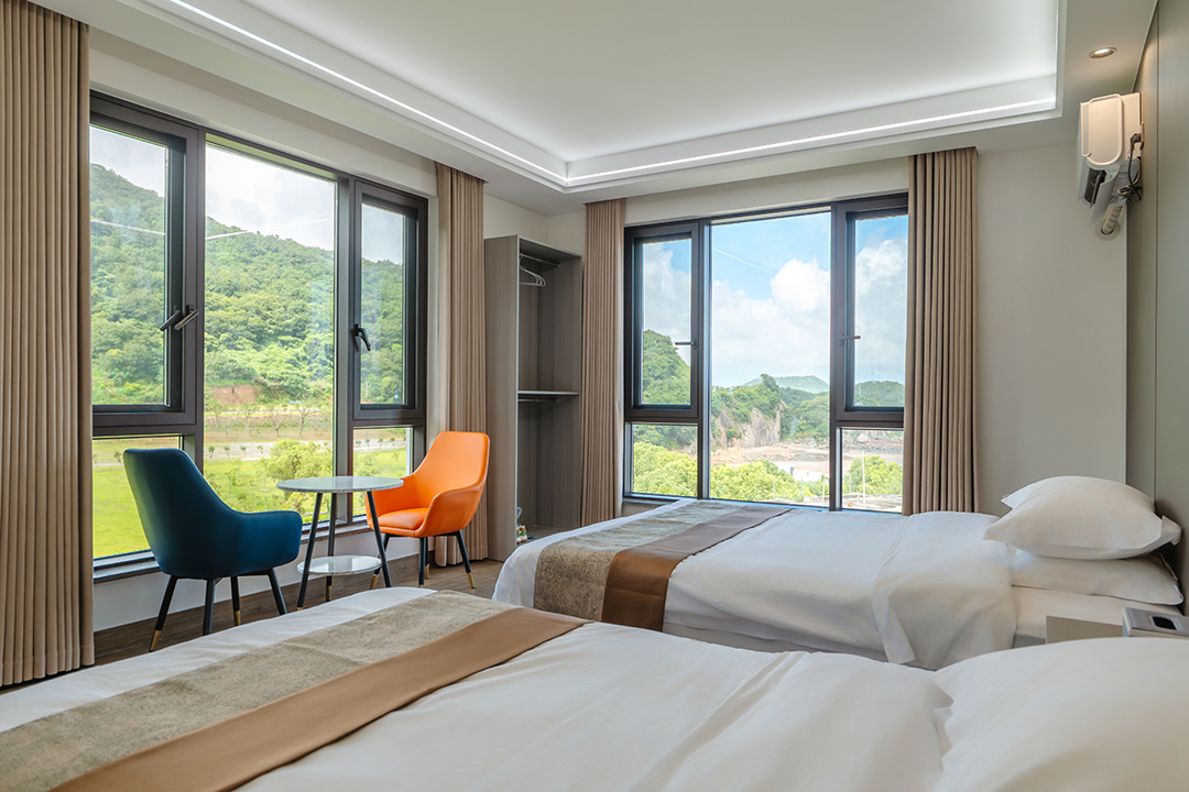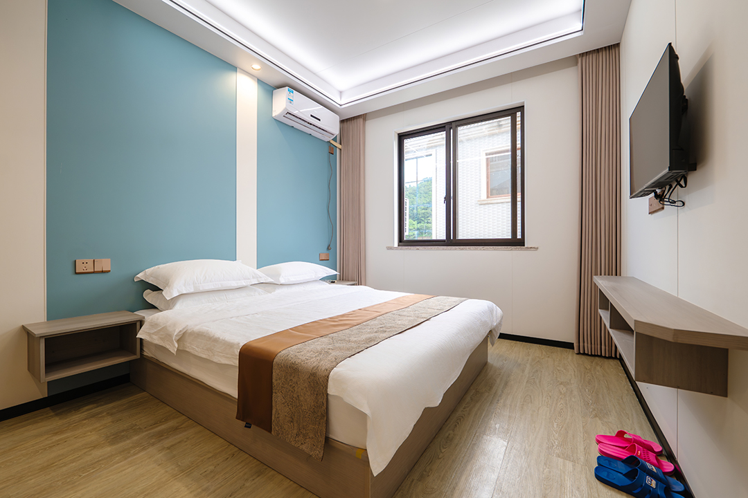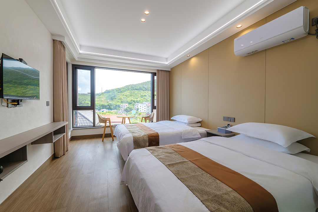 象山依山伴海民宿共有12间客房,设有1间双床房、2间大床房、3间亲子间、5间海景房和1间家庭套房,可同时接待27人入住。客房大部分都配有大面积落地窗,让您足不出户就能包揽山海美景,享受温暖假日阳光。同时每间客房都配备有干湿分离的独立卫浴,空调、电视、无线网等设施一应俱全,满足您日常生活的同时,也让您能享受到最安心的居住体验。
